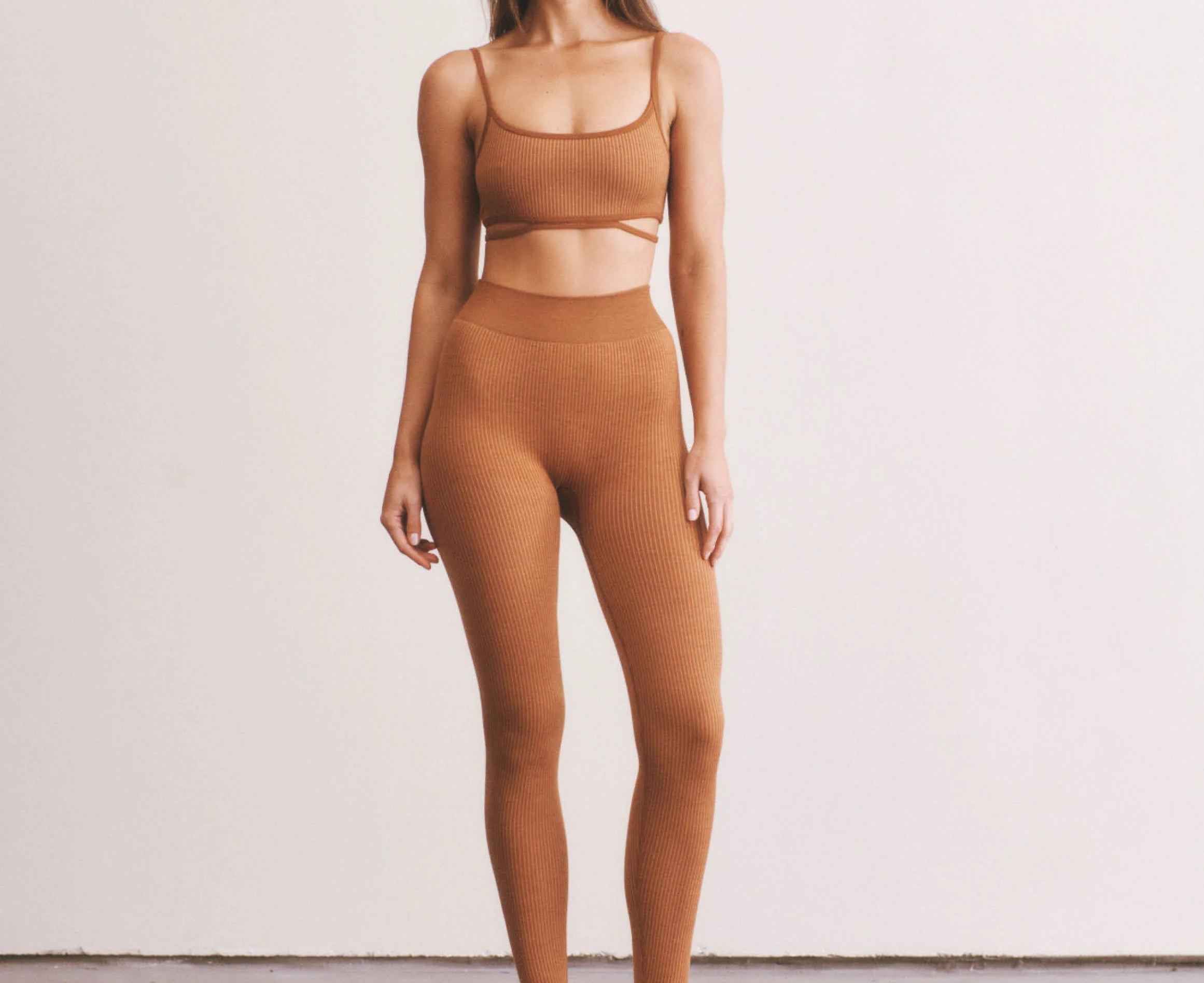 Introducing Nagnata's Classic Wool Rib Legging in Spice a superfine Merino wool seamless knit high-waisted rib legging. Designed with a specially constructed wide waistband at 9cm, the Classic Wool Legging offers additional body sculpting. Made with a seamless fabrication providing mild compression, support and breathability with a super-soft second-skin feel against the body.