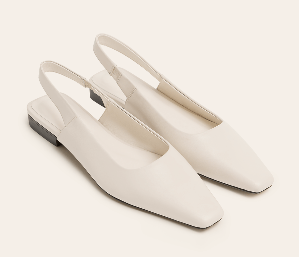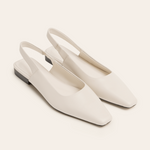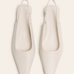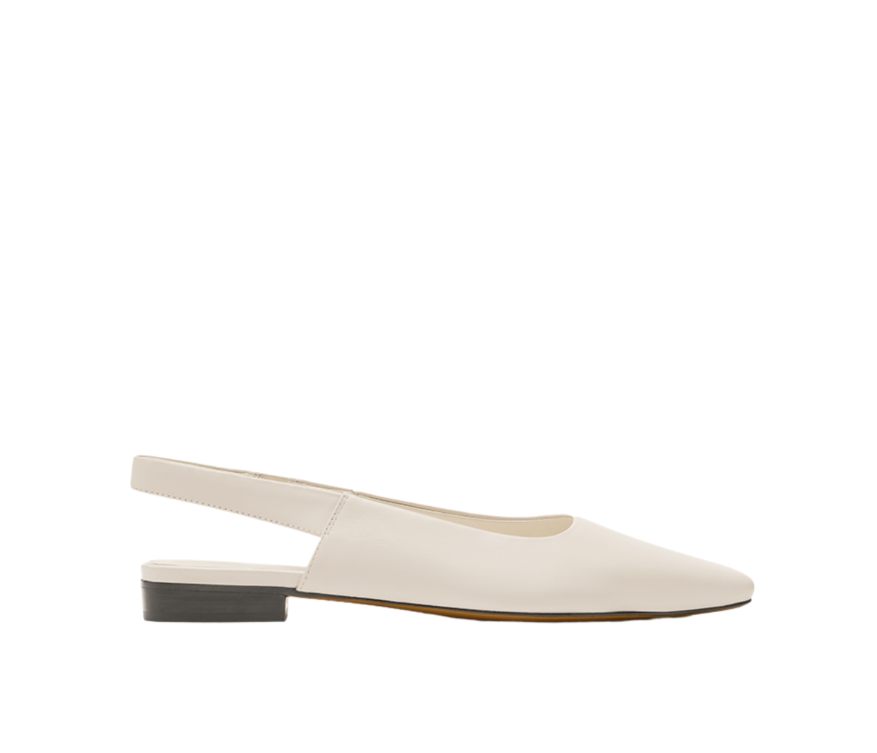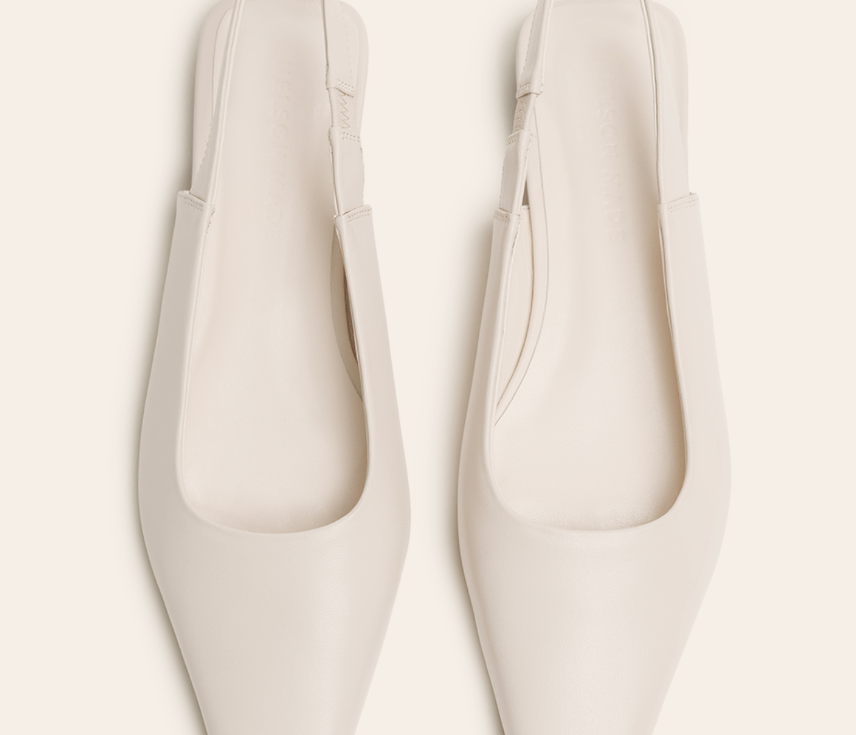 Introducing Nelson Made's Mimi Flat in Crema Leather. Combining buttery soft nappa and rich suede for a luxurious feel, offering effortless ease of wear. With its almond toe and low profile, the shoe seamlessly blends classic elegance with a contemporary edge, making it the perfect addition to elevate any outfit.