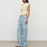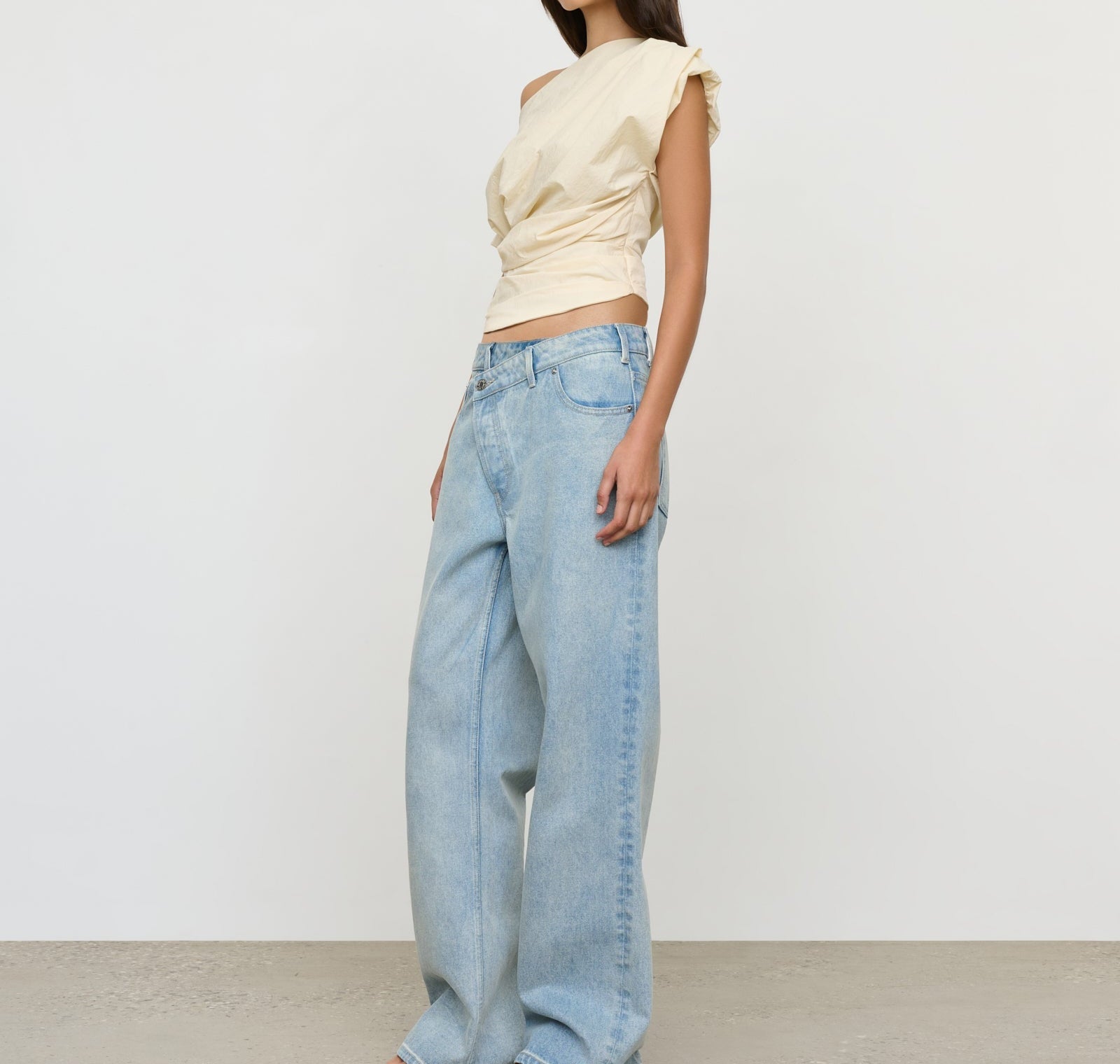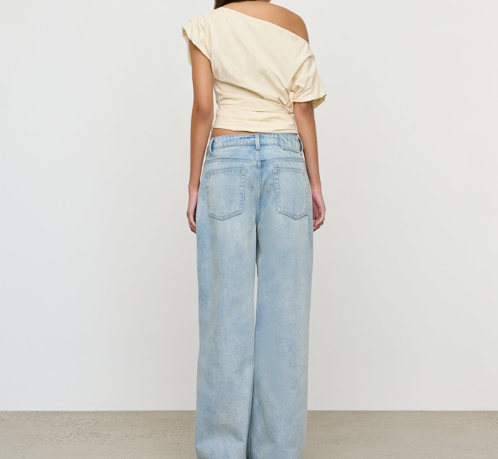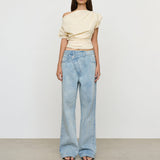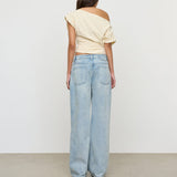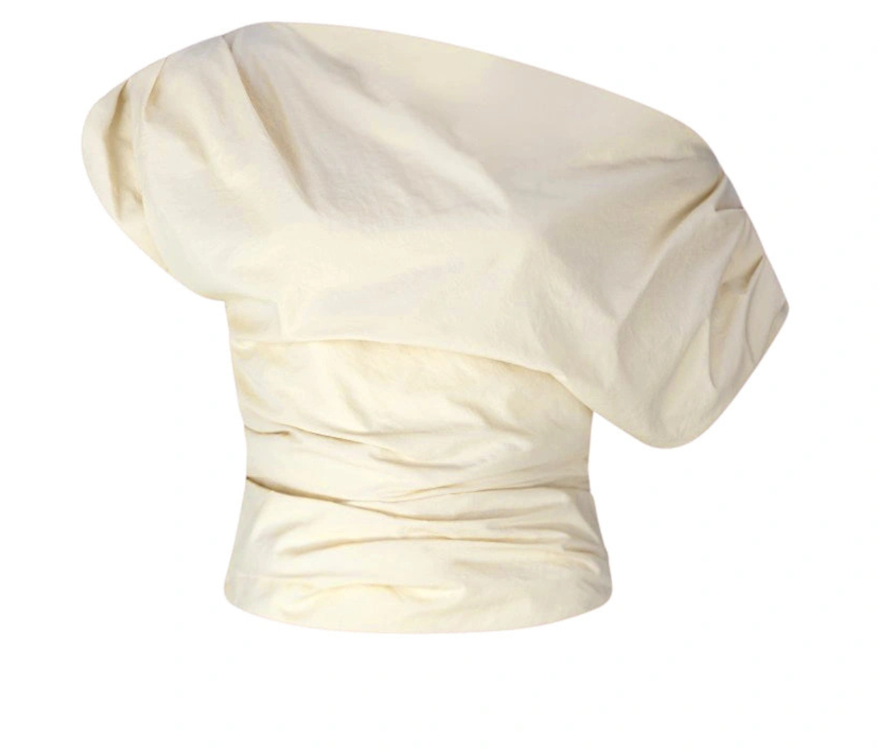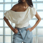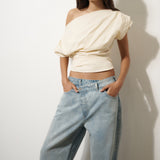 Introducing One Of Others Henri Top in Vanilla, an off-shoulder top in vanilla cream color. Designed with a draped off-shoulder silhouette with asymmetric detailing. Pair it with a denim bottom for an elevated look.