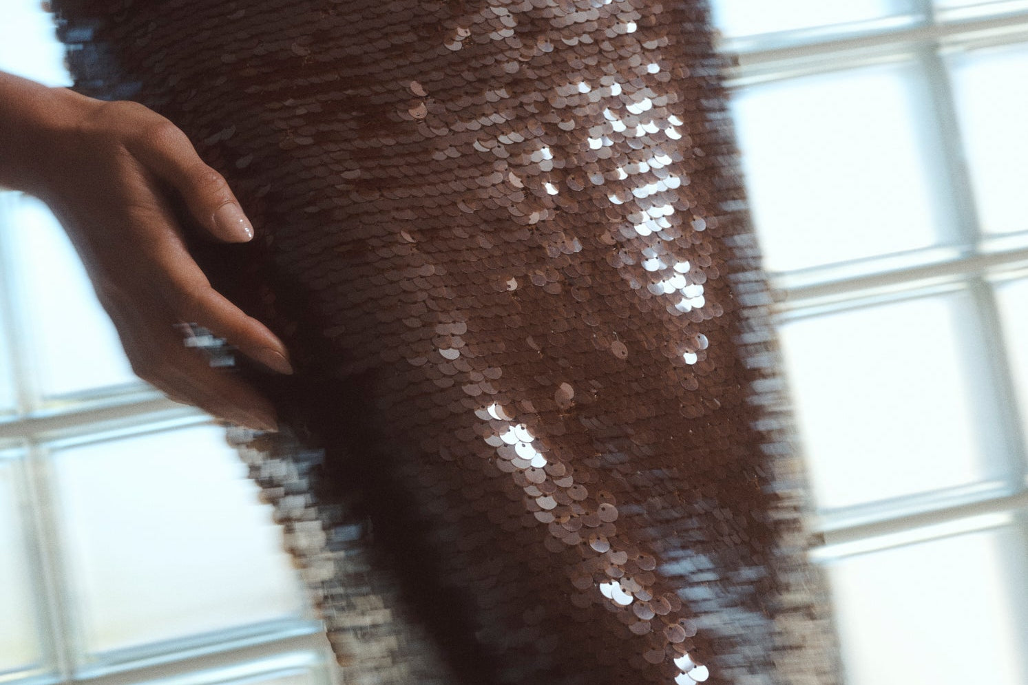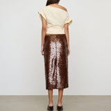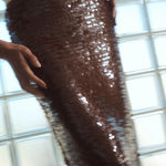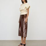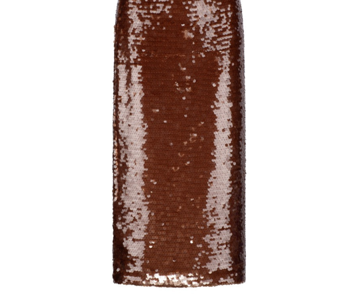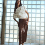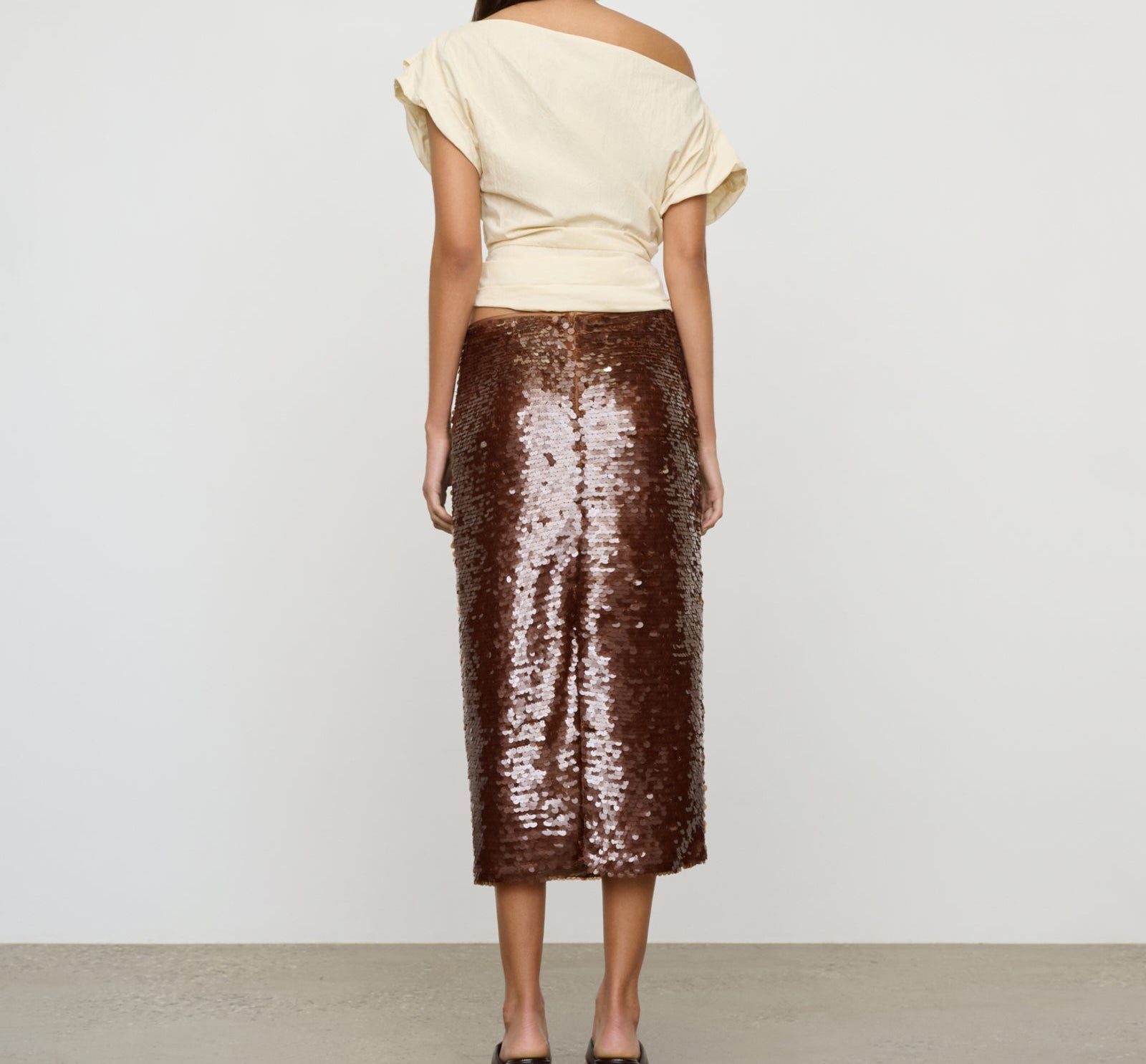 Introducing One Of Others Kendall Skirt in Coffee, a straight midi skirt in coffee. Designed in an A-line silhouette crafted in a sequin with a centre back split. Pair it with the Henri Top in Vanilla for an elevated coordinated look.