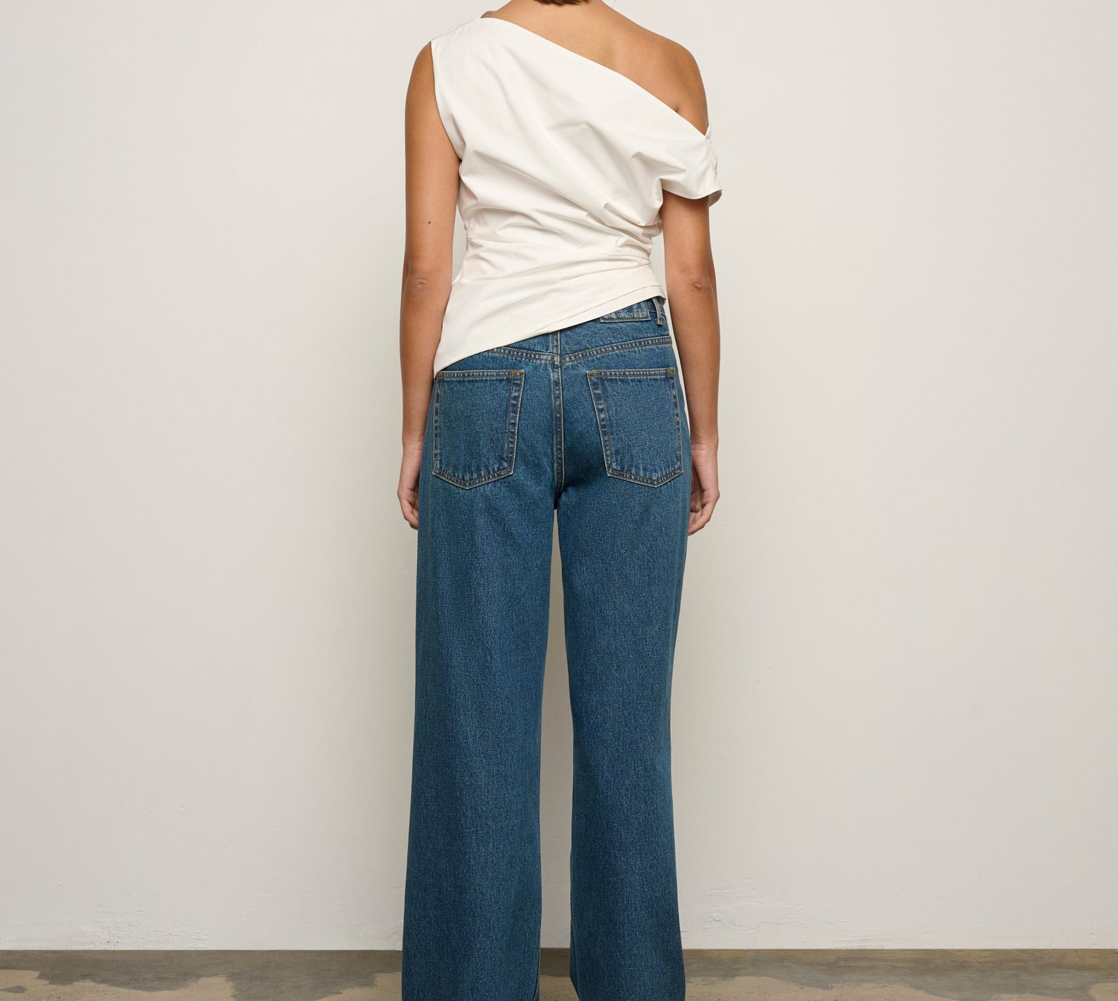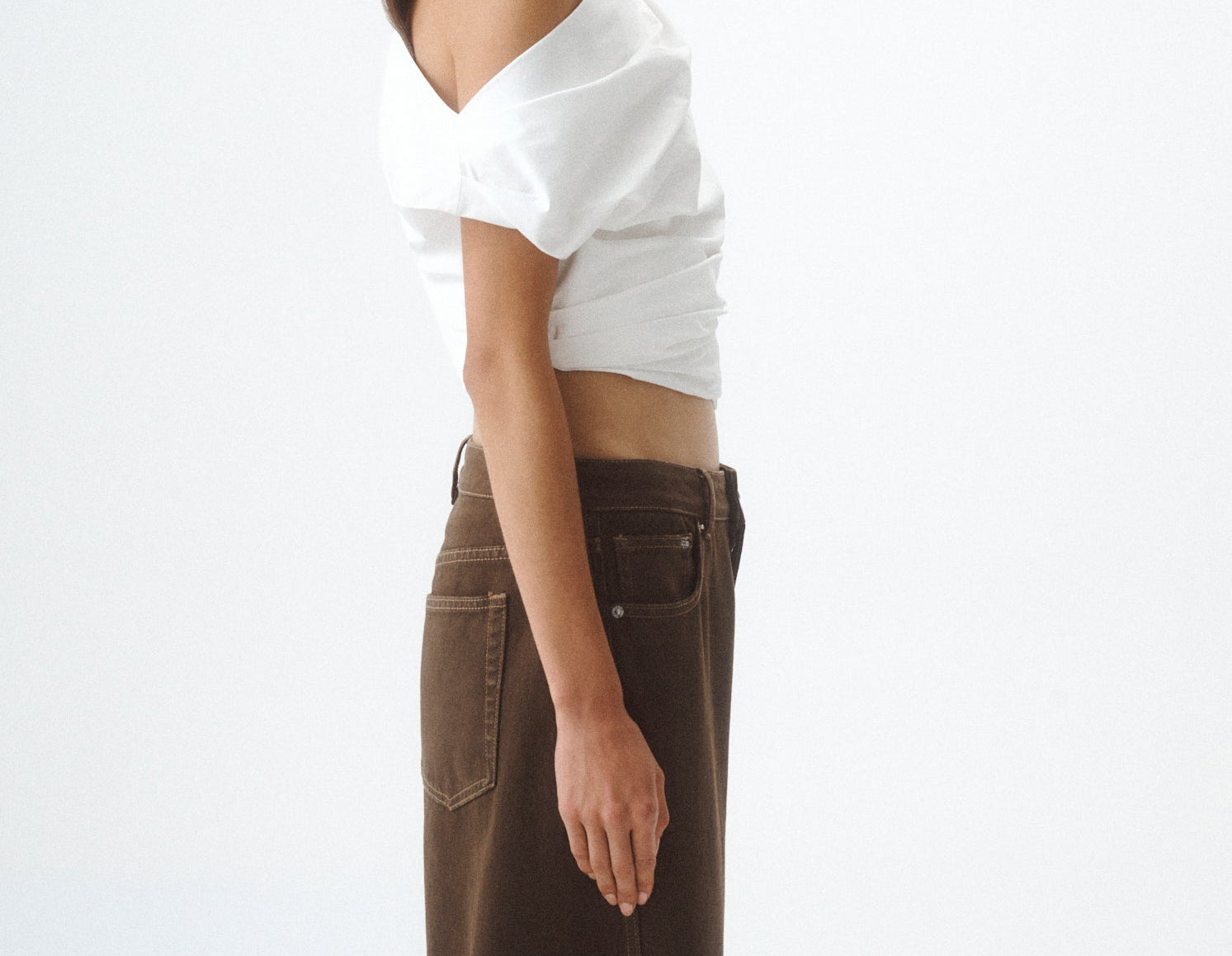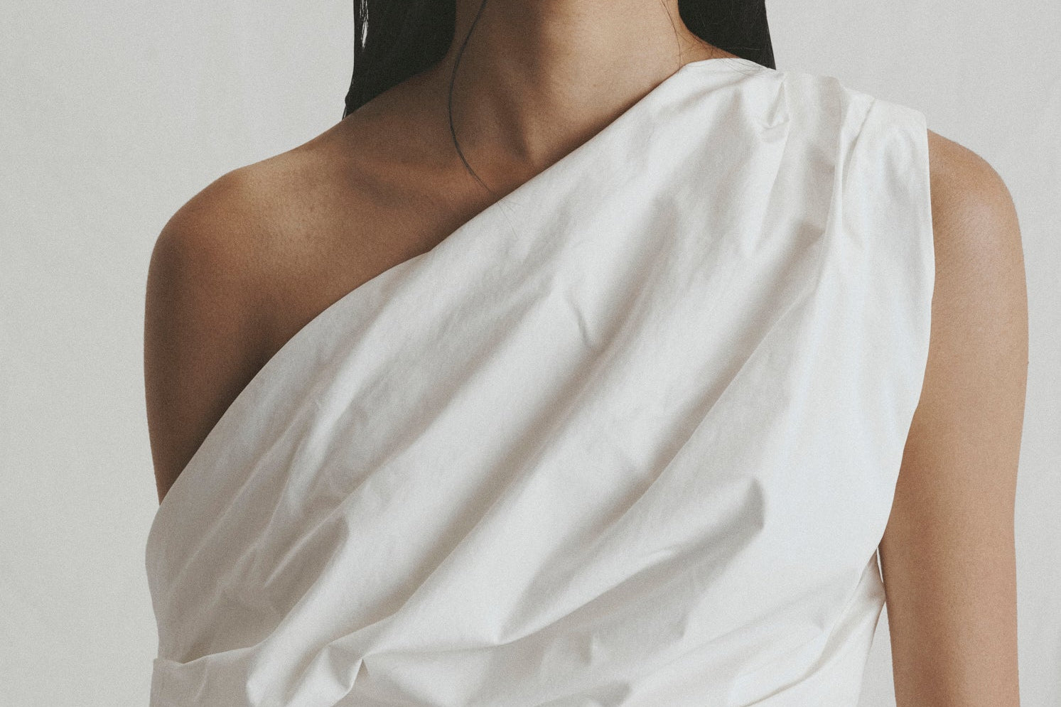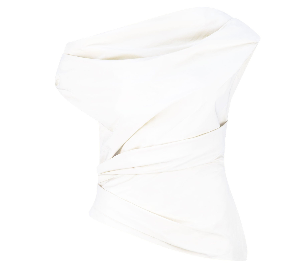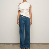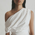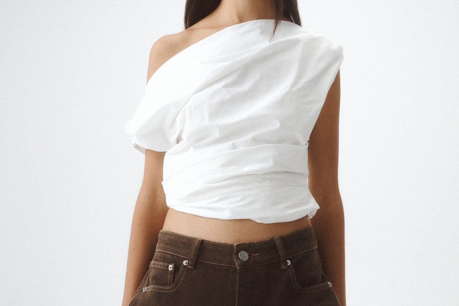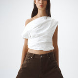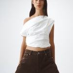 Introducing One Of Others Pallas Top in Chalk, an off-shoulder top in vanilla cream color. Designed with a draped off-shoulder silhouette with asymmetric detailing. Pair it with a denim bottom for an elevated look.