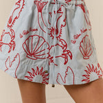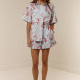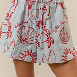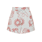 Introducing Palm Noosa's Le Palm Shorts, a relaxed mid-rise short silhouette in red embroidered motifs. The Le Palm Shorts feature all-over contrast embroidery detailing and are designed with an elasticated waist with a drawstring tie for ease of fit. Featuring a relaxed leg and side pockets, pair back with the Le Palm Shirt for an elevated matching set.
