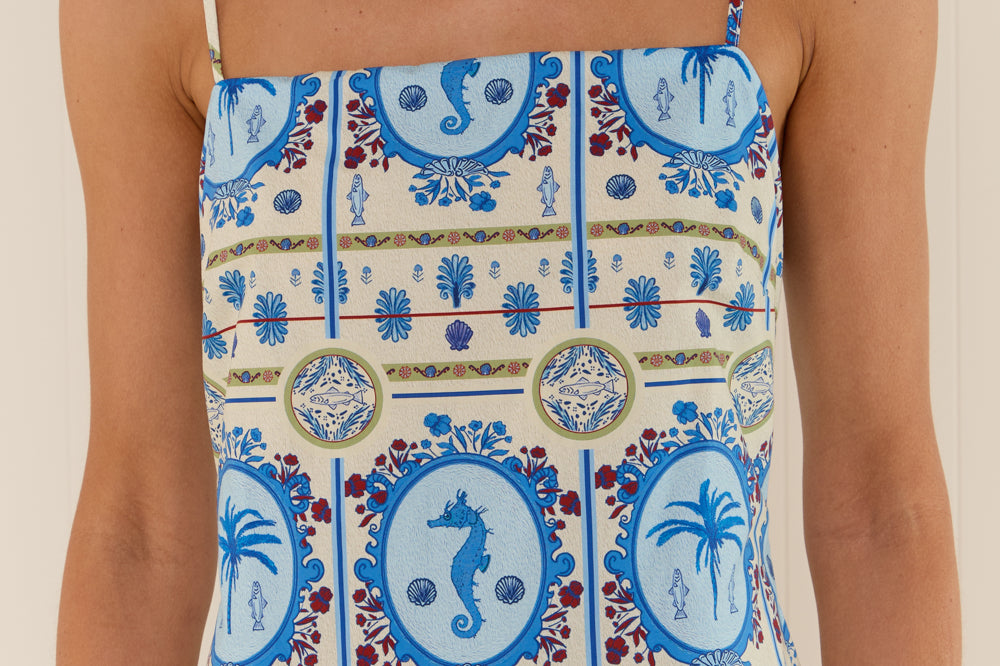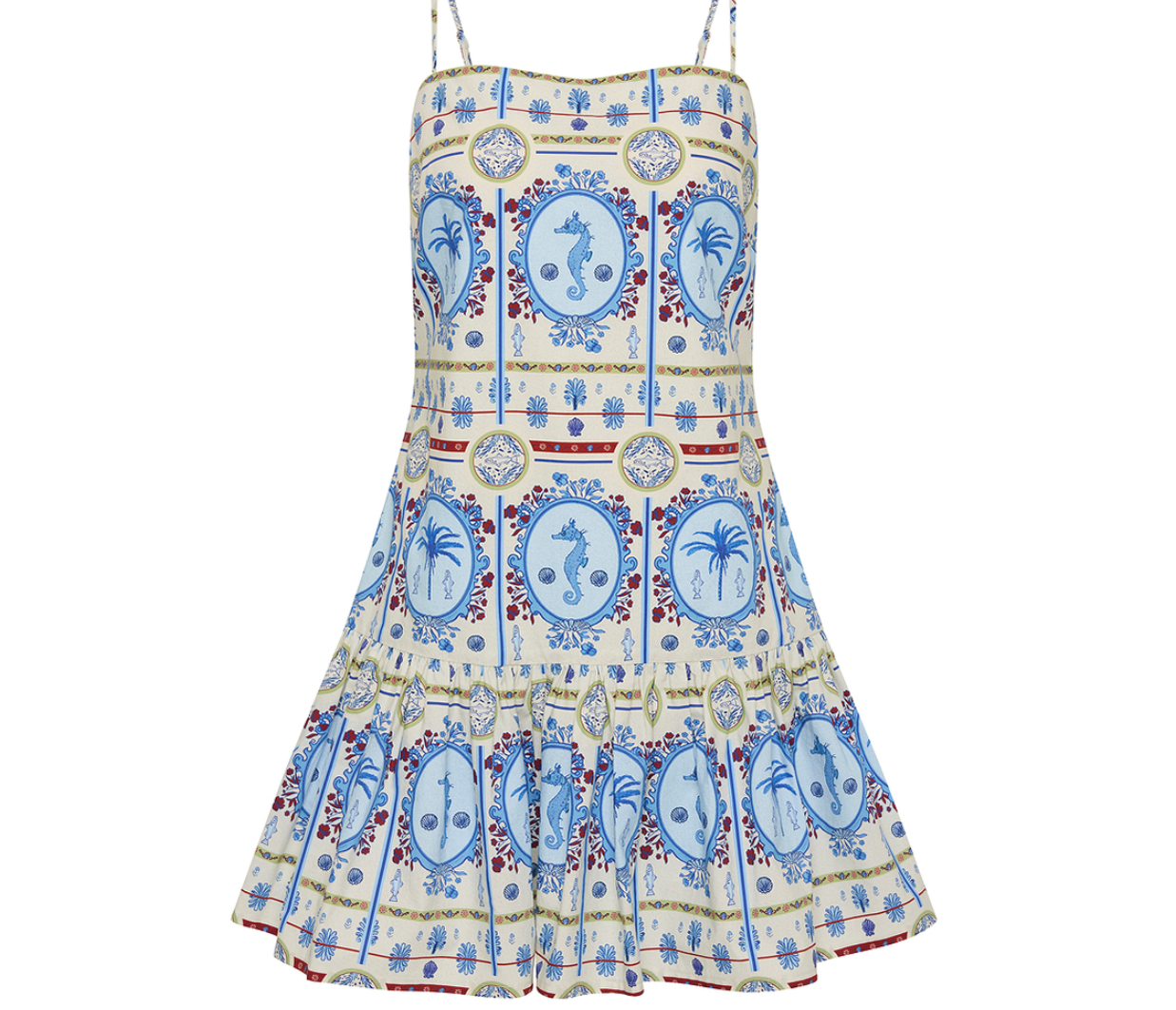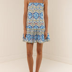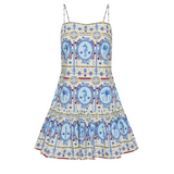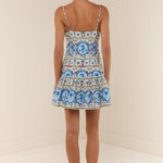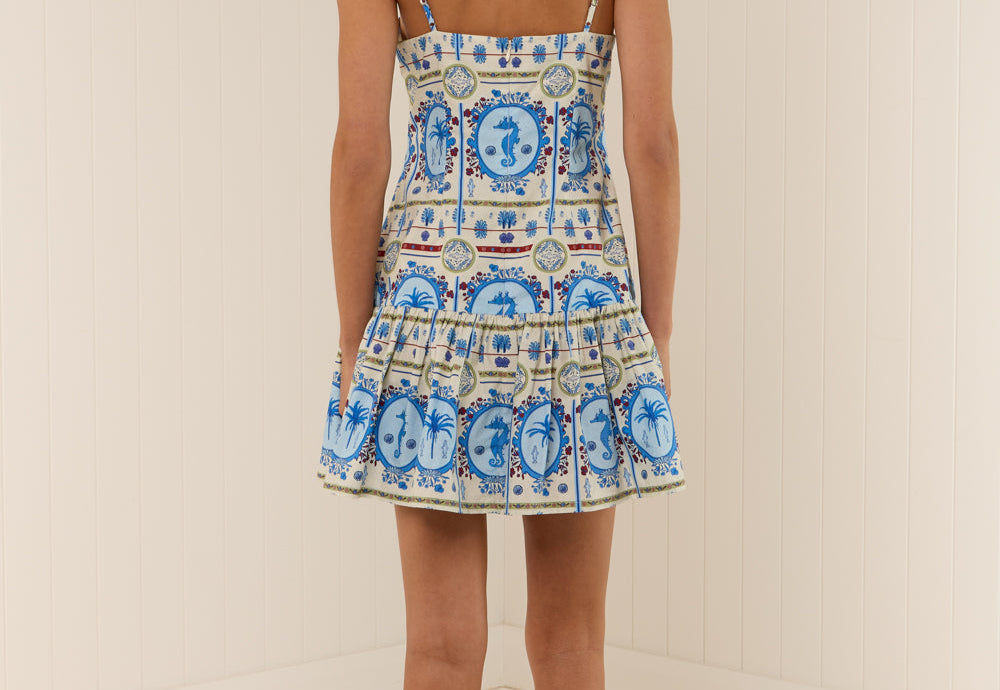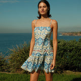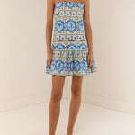 Lima Cotton Poplin Mini Dress in Lagoona Tile