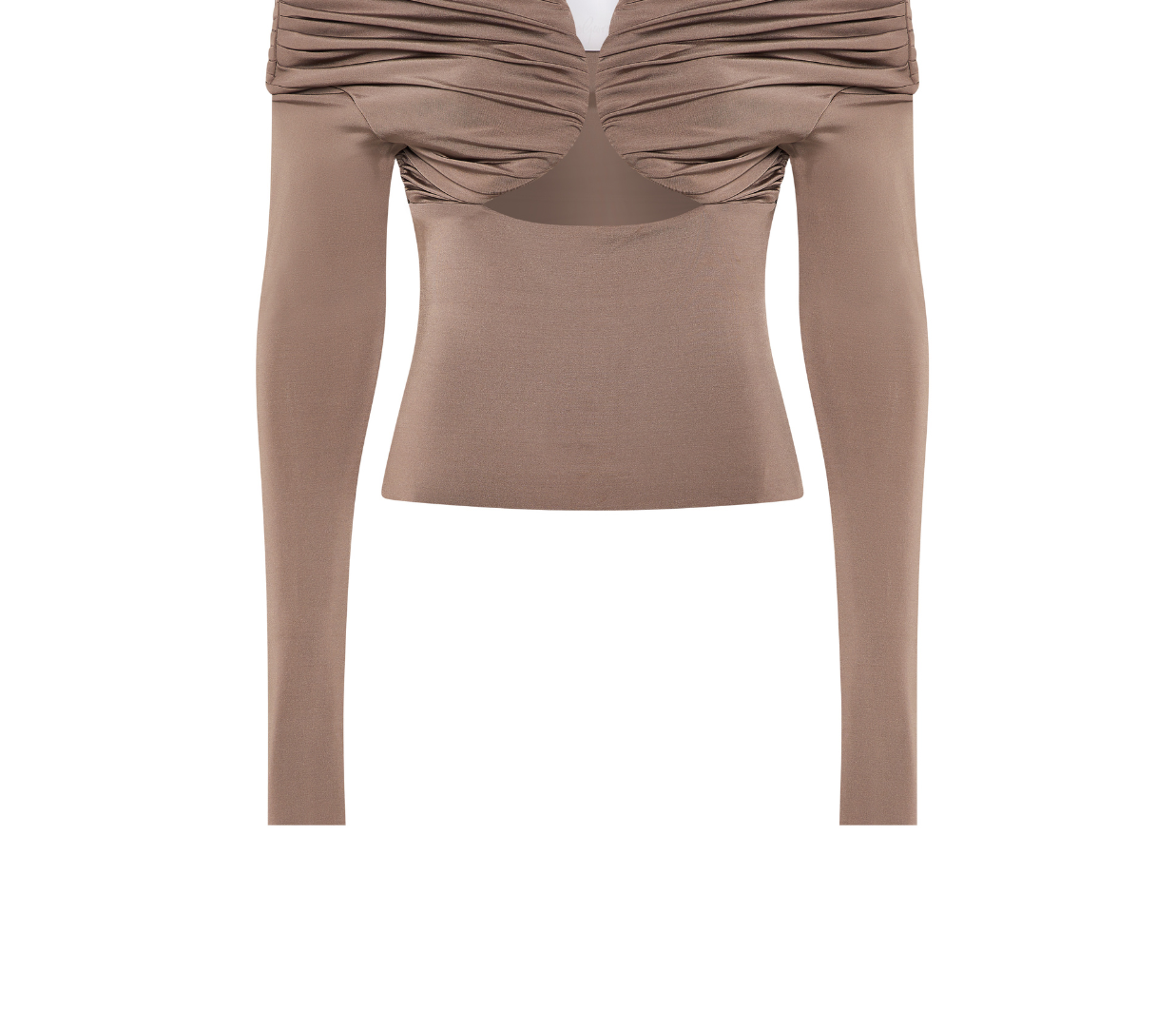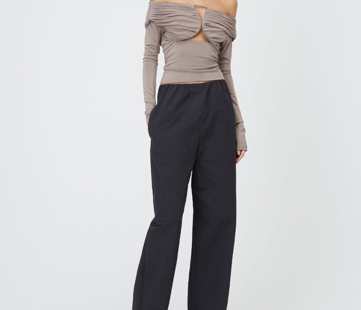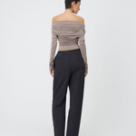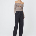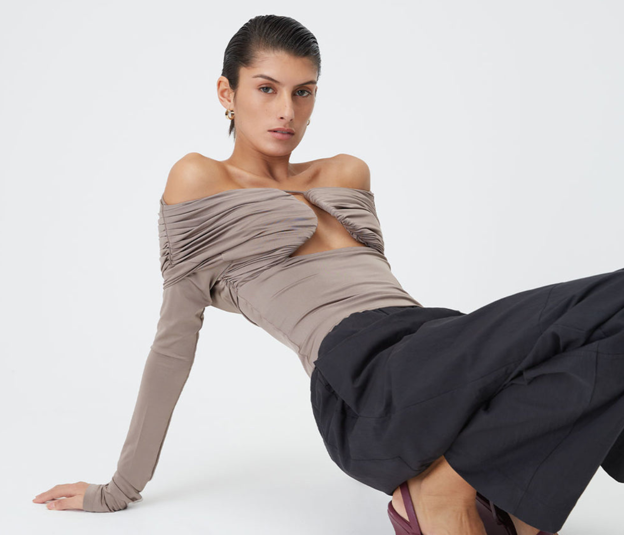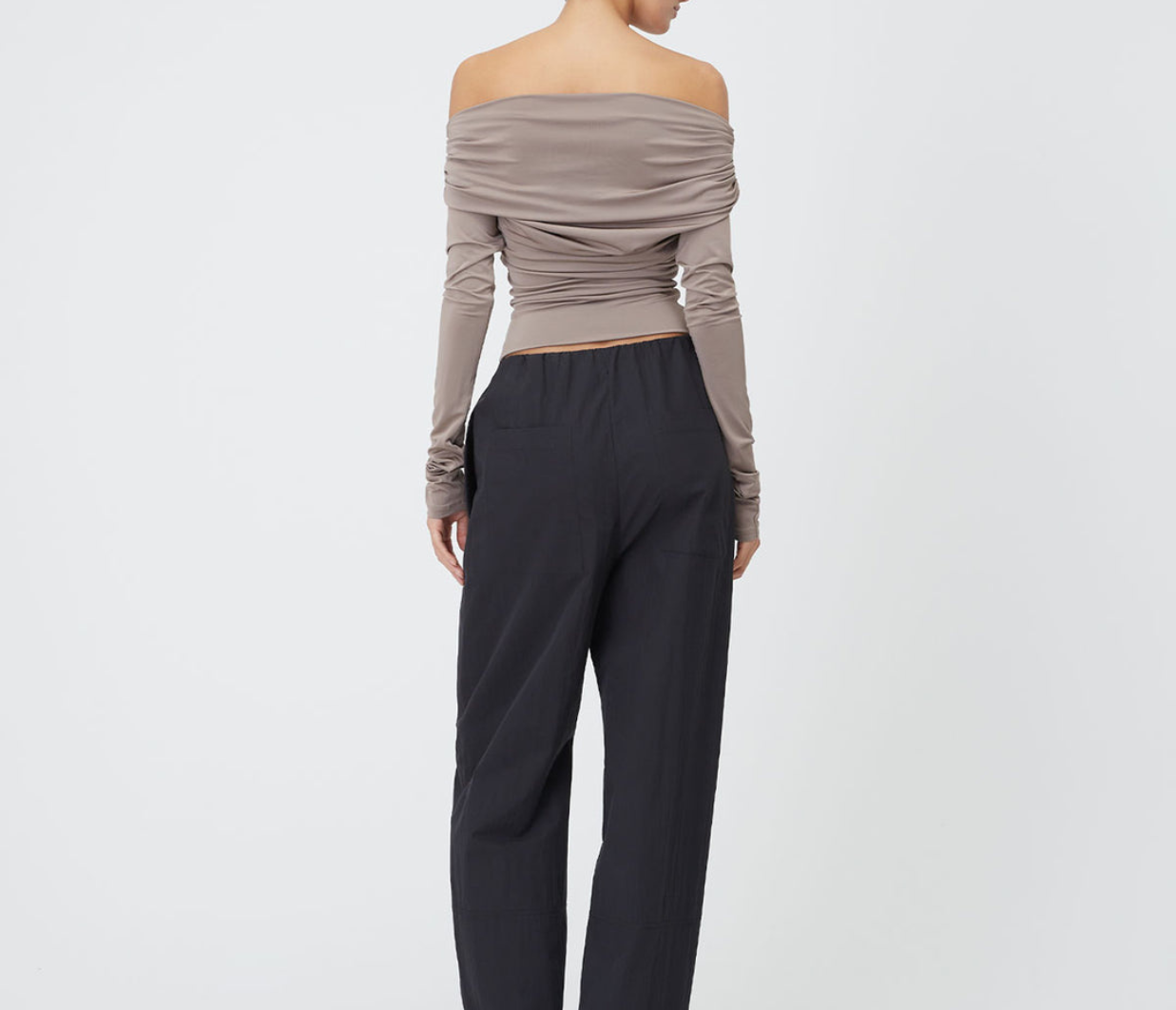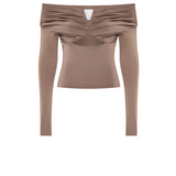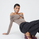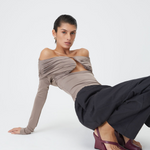 Introducing The Axel Top in Concrete imade from a soft stretchy viscose, with beautiful draping and structure through the front of this top. Its soft, neutral hue designed to frame elegance over the body, enhancing the wearer’s natural curves with grace. Can be worn either off the shoulder or with more coverage, making it a versatile piece that seamlessly transitions from day to night.