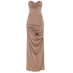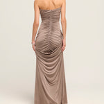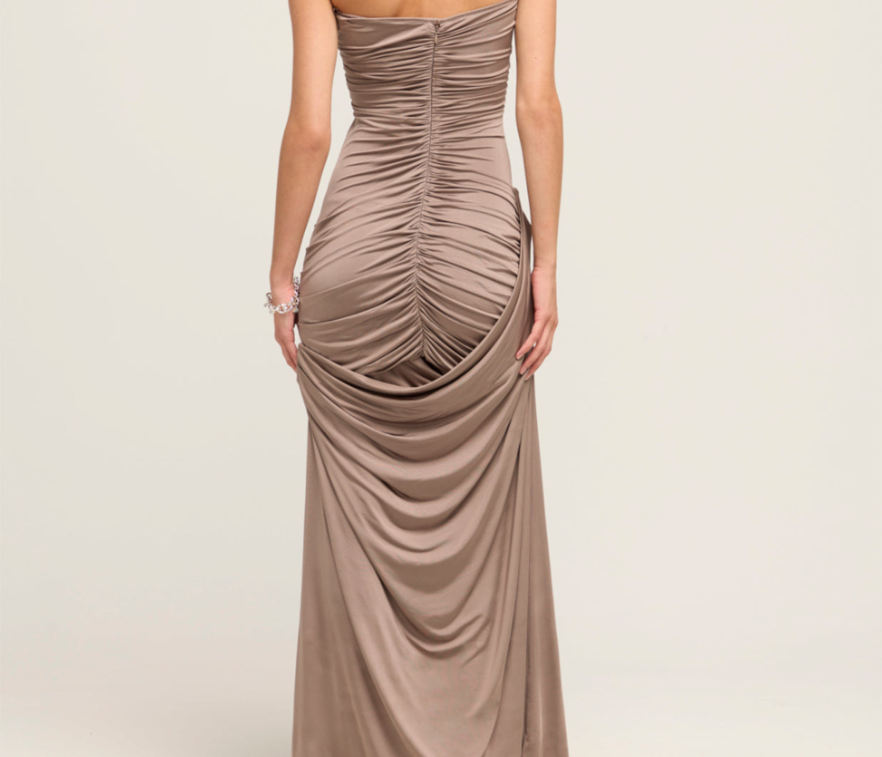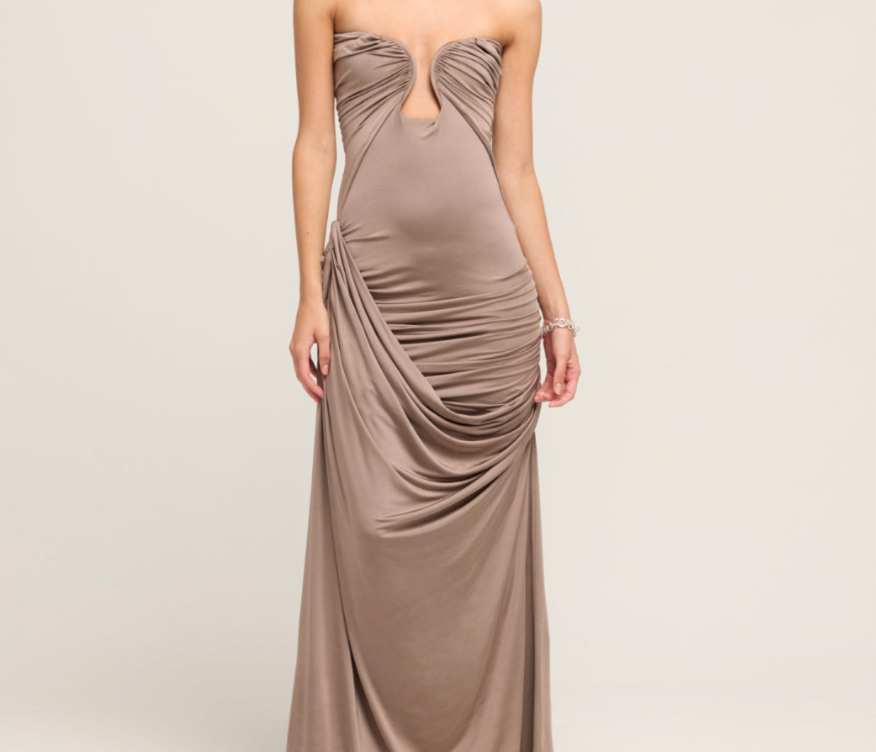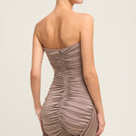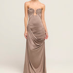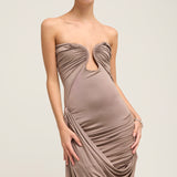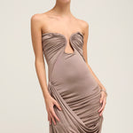 Introducing the Val Strapless Dress in Concrete, showcasing a keyhole effect with elegant gathering throughout, versatile enough to be worn with or without straps. Wear yours with a heeled mule and simple jewellery for elegant and contemporary look.