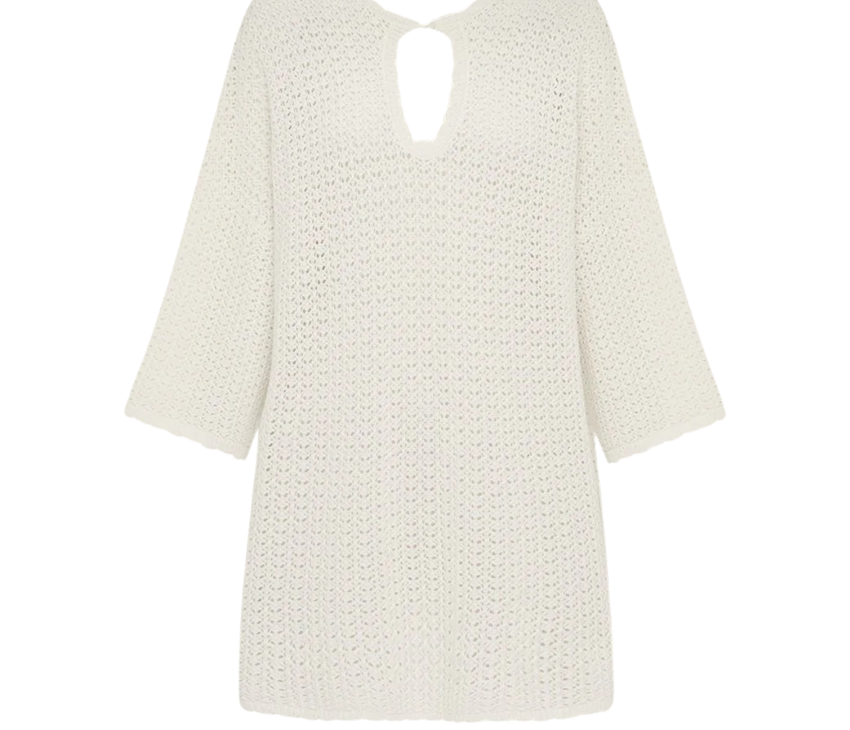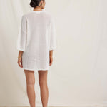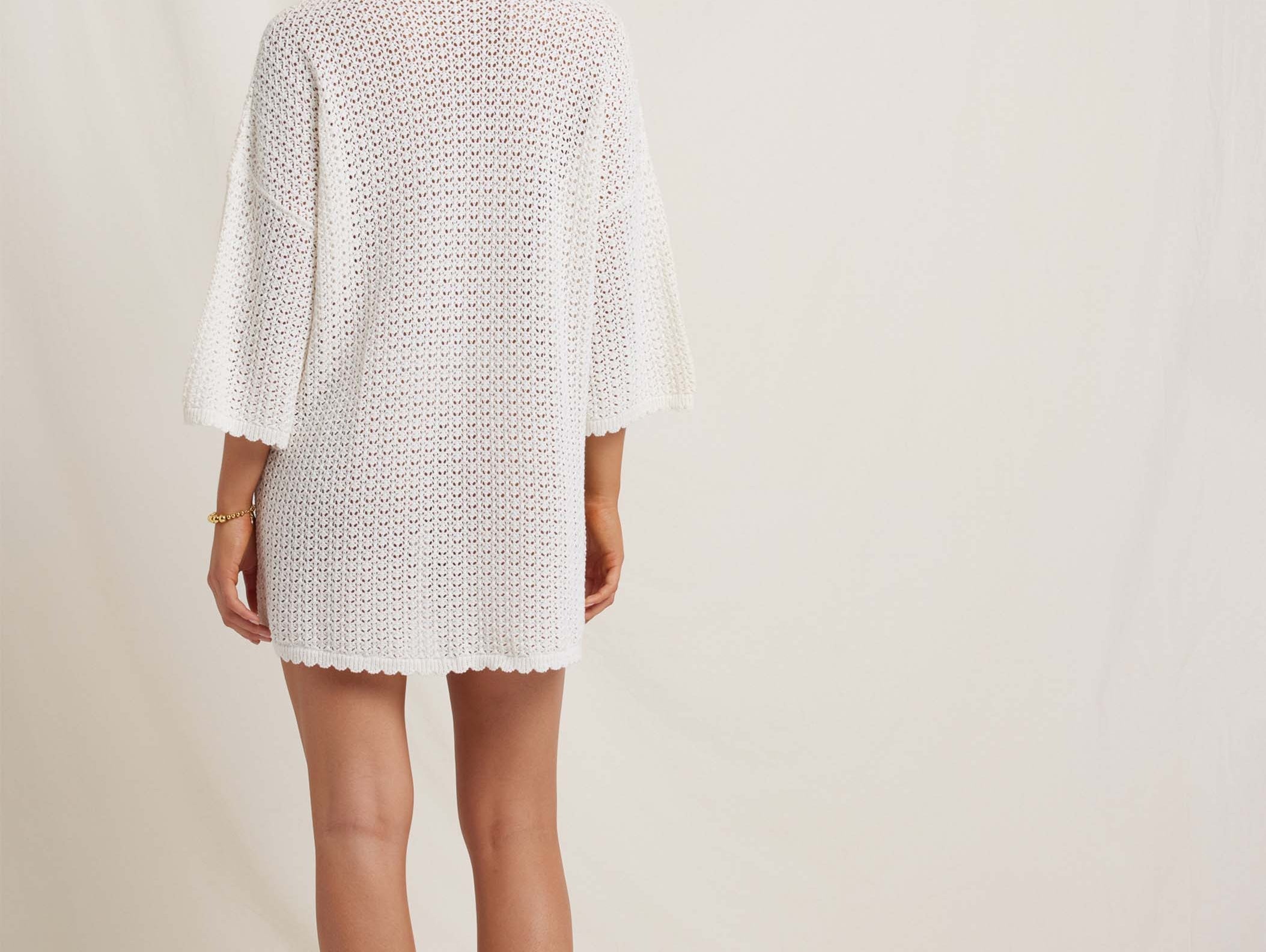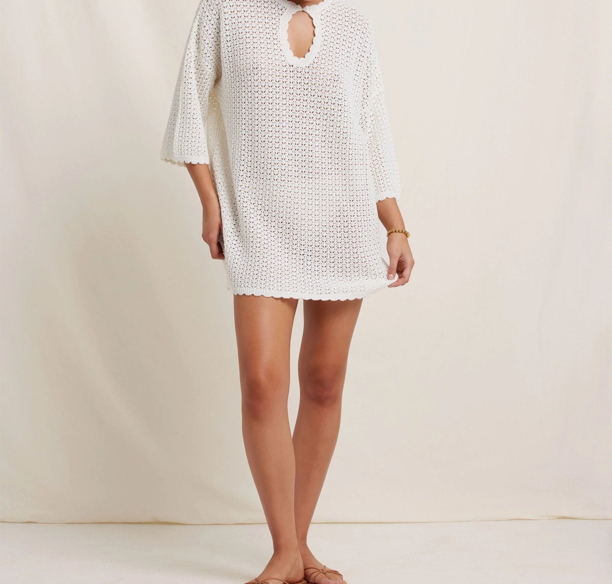 Introducing Peony's Pointelle Oversized Mini Dress, crafted from organic cotton crochet, the Pointelle Oversized Mini Dress features signature scalloped edges and an adjustable front keyhole. Comfortable and versatile, it's perfect for lounging poolside or dressing up with summer sandals.