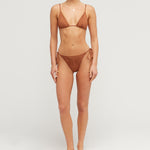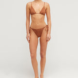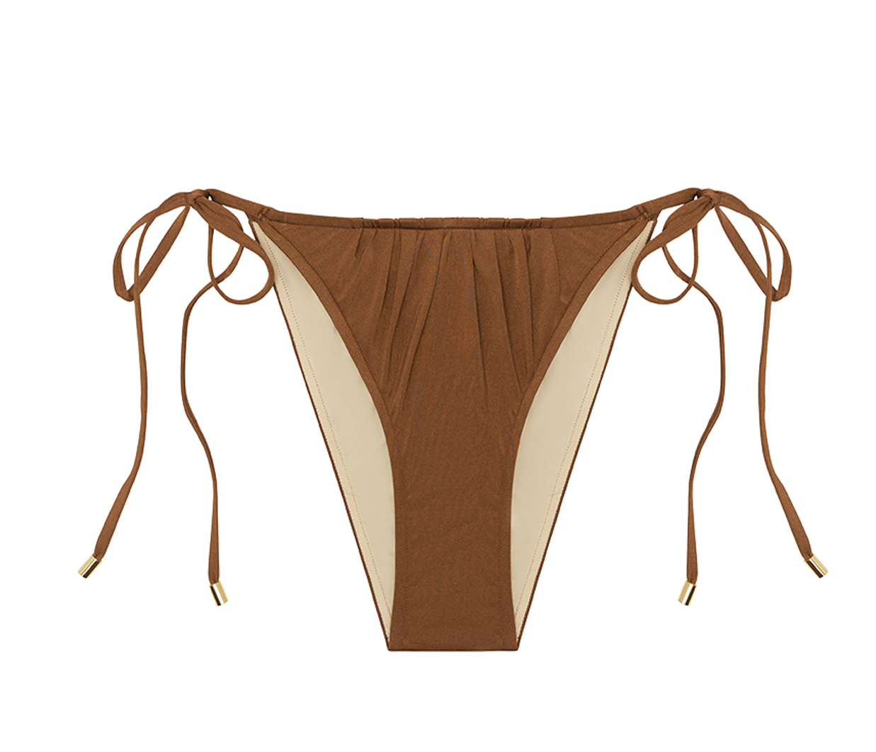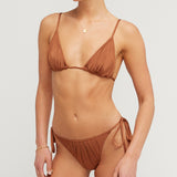 Featuring luxurious Maple hue and premium gold toggles, elevate your beach style with Peony’s Ruched String Pant. With adjustable tie sides and exquisite ruching detail, this piece is a must-have for the modern beach enthusiast. For a perfectly coordinated look, pair it with our Ruched String Tri in Maple.