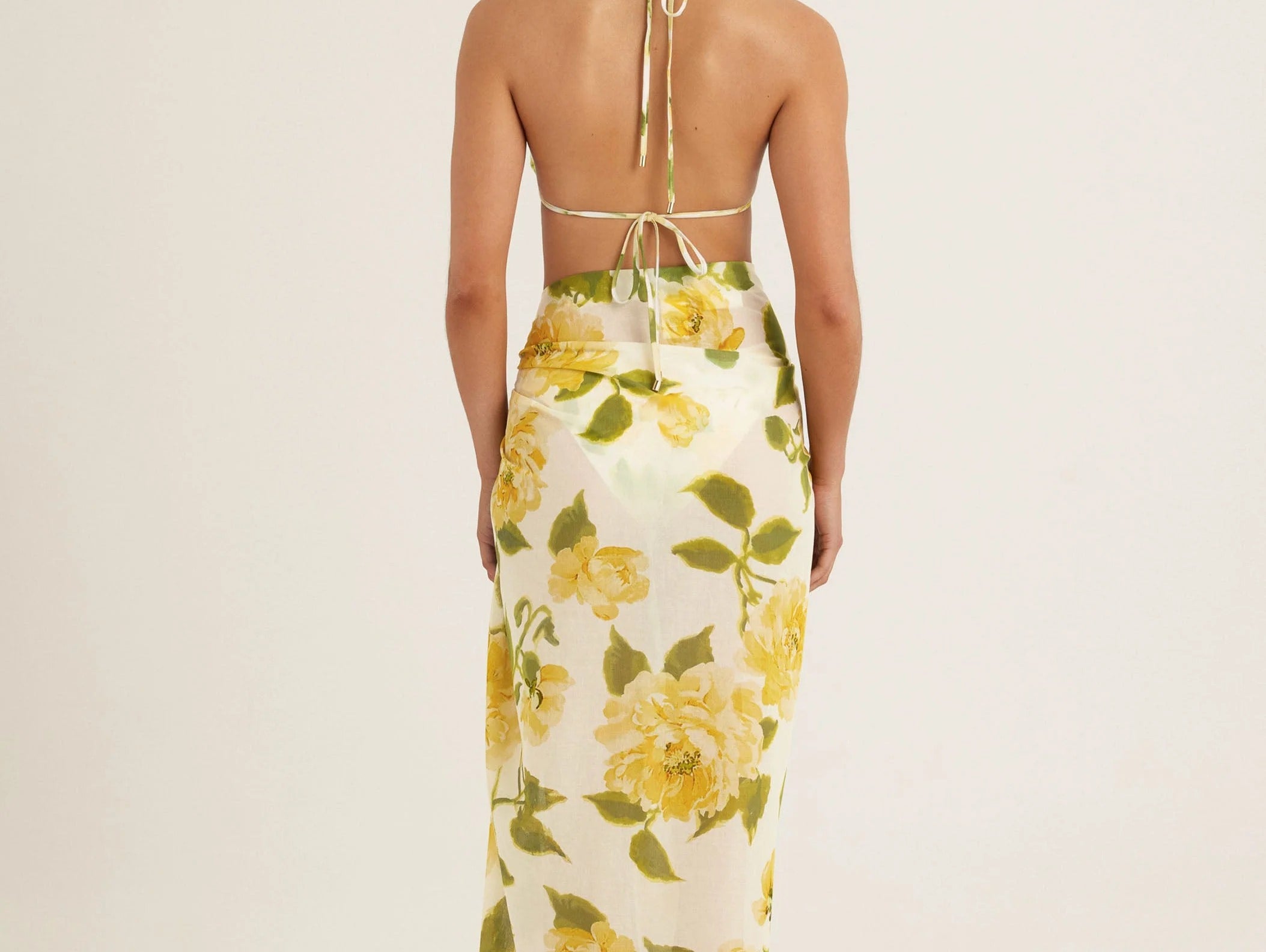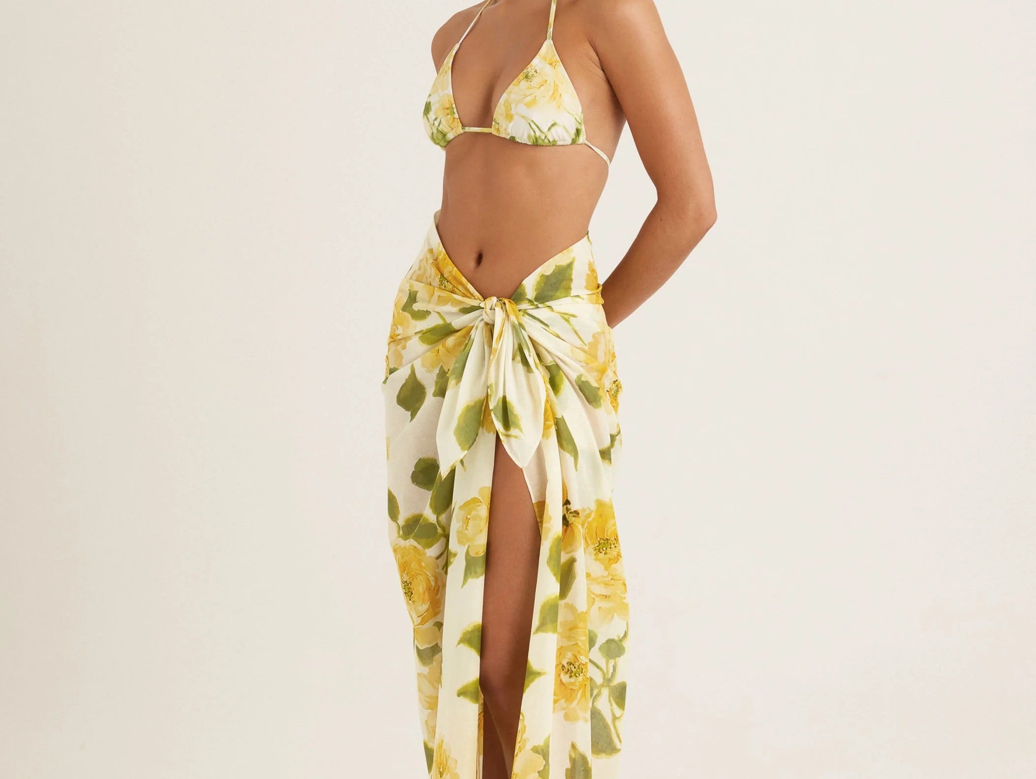 Introducing Peony's Sarong in Claire De Lune, a cover-up sarong wrap silhouette with Peony's exclusive print. The sarong is made of a soft silk fabrication, a sleek and contemporary summer accessory. Ideal for beach and poolside layering, this piece is a vacation staple.