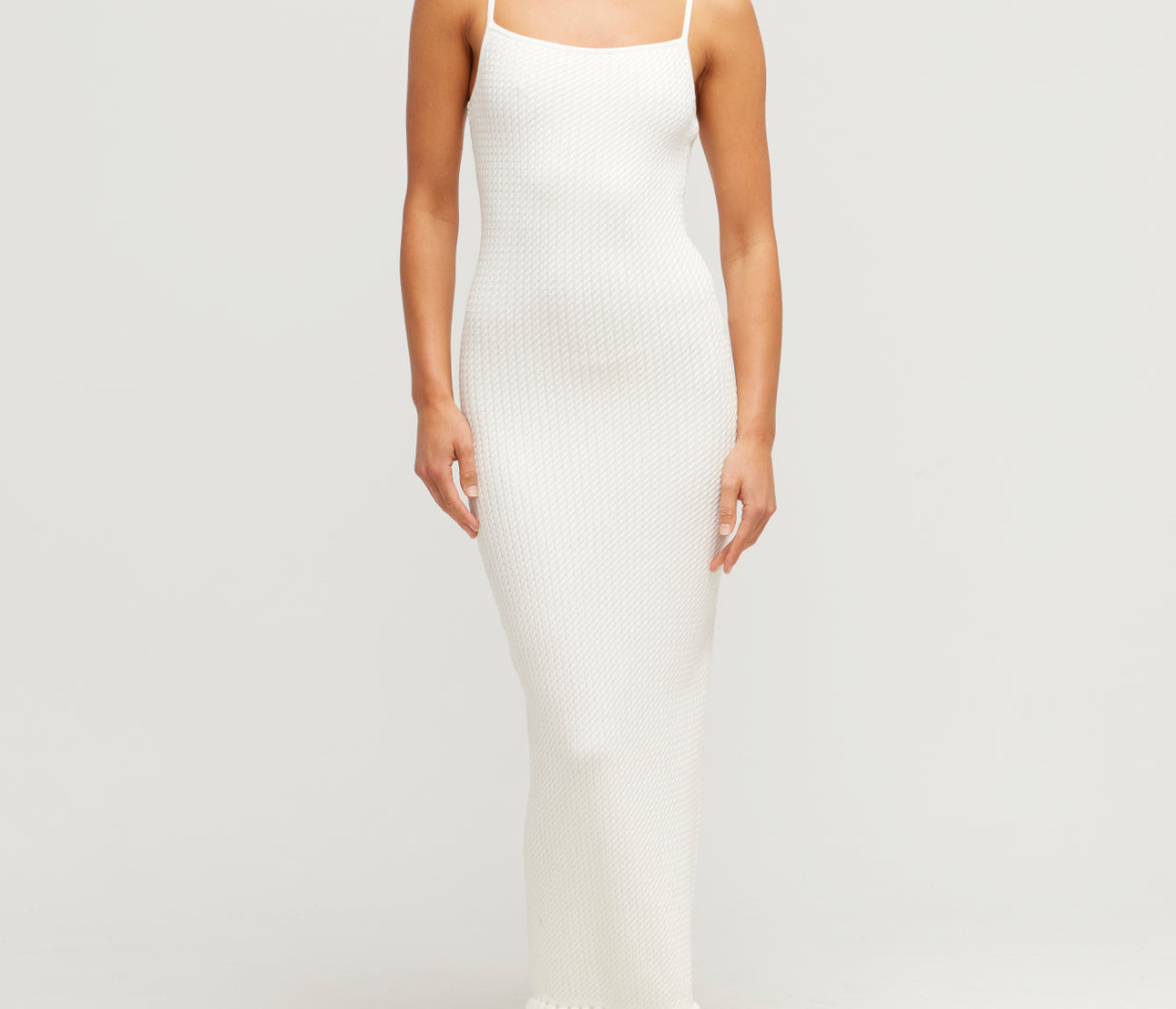 The Iris Dress is perfect for layering and is cut from a soft, cable knit. Designed for a close fit, it features a scooped neckline, thin straps and a ruffled hem. Wear yours as a set with the matching Iris cardigan or layer it underneath a coat.