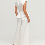 The Juno Shirt is a versatile and elegant piece crafted from soft cotton sheeting. It features short sleeves, a collared neckline, and centre front buttons. A detachable waist belt adds volume to the hem, allowing for a customisable fit.