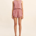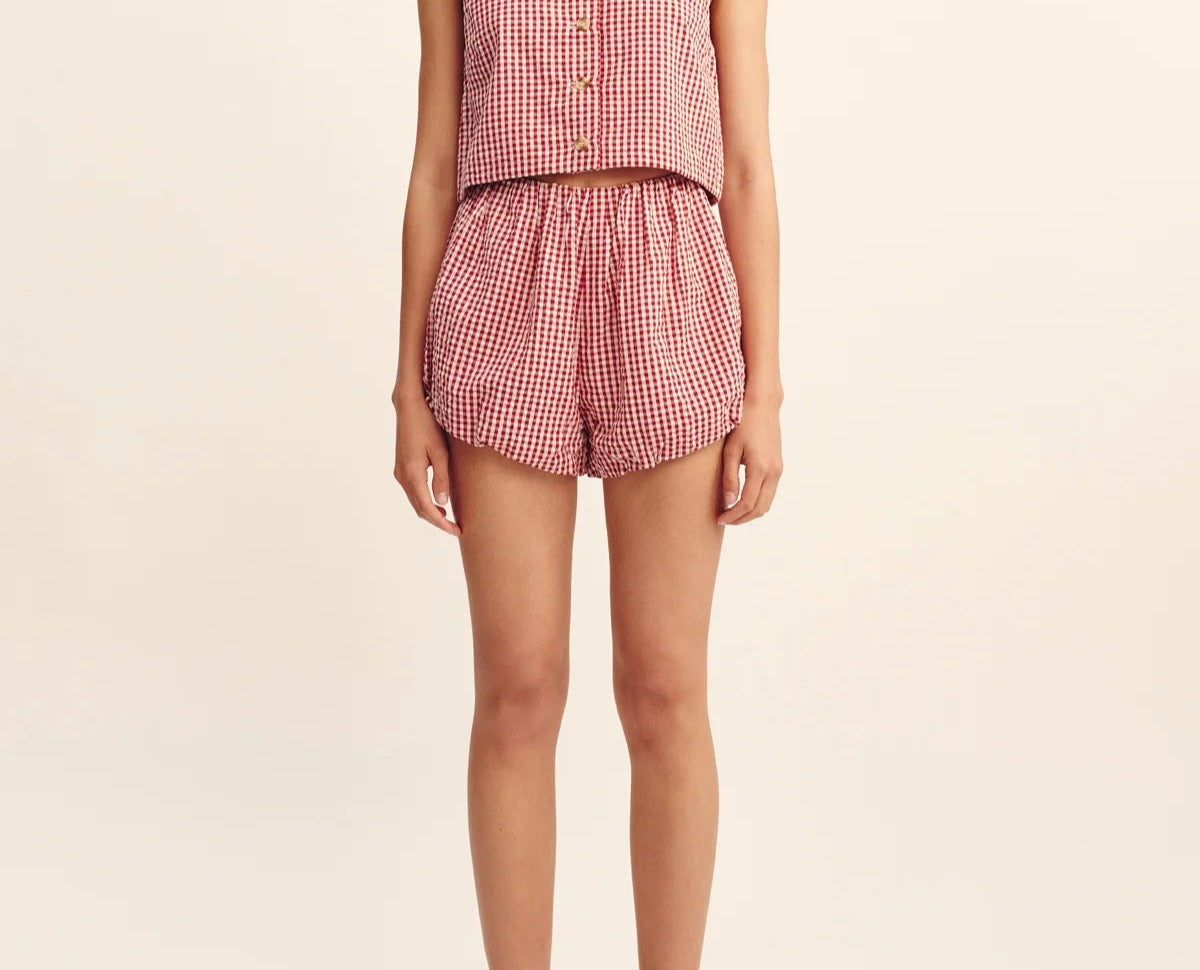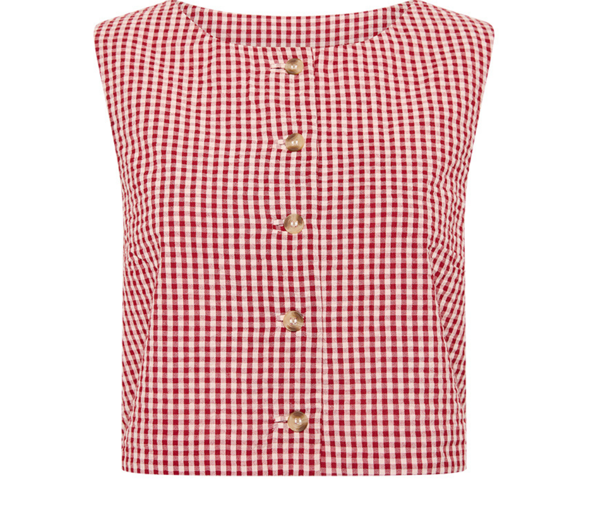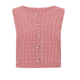 Introducing the Rio Top in Red Gingham, crafted from 100% linen and featuring an elegant wide neckline with a relaxed cropped silhouette. Pair with the Aurelia Short in Red Gingham for a complementary set.
