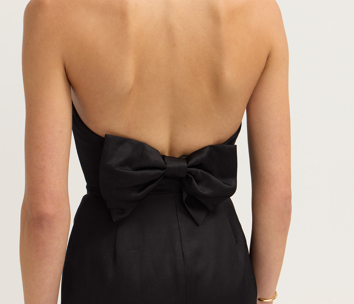 - Strapless design with a curved neckline