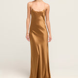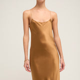 Carolyn Silk Maxi Slip Dress in Toffee