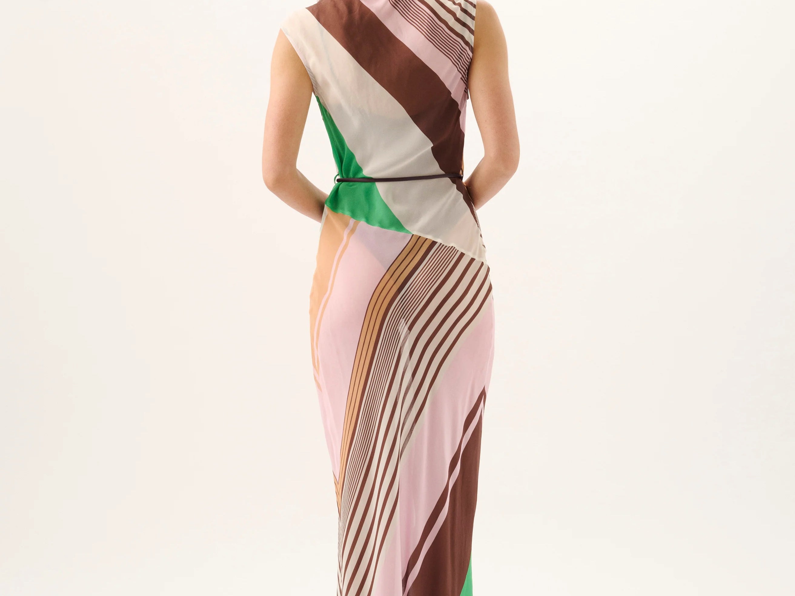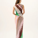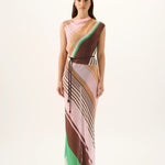 Introducing Roame's Capri Maxi Dress in Tango Stripe, a maxi-length dress silhouette. Featuring an asymmetric neckline with removable tie detail and a bias-cut silhouette, this sheer, flowing style moves effortlessly with you. The Capri Maxi Dress makes a statement and is made for balmy sunsets and evening moments.