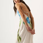 Introducing Roame’s Tilda Dress in Starlit Lily, a sequin slip-on maxi dress. Crafted in Roame's exclusive blue and green floral print and adorned with micro sequin drapes at the ankle. The dress features a straight neckline, thin straps, and a back scoop with an adjustable tie. The Tilda Dress is the perfect choice for formal events or cocktail parties.