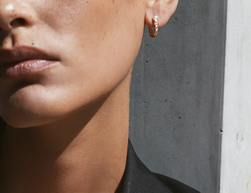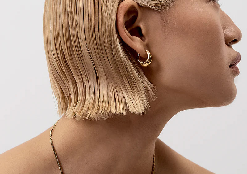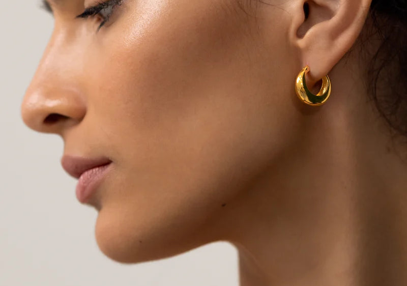 Introducing Saint Valentine Jewellery's Positano Hoops in Gold, a classic hoop-earring silhouette. The Positano features a hidden hinge for a seamless closure. Wear it solo or style it with studs and mini hoops for an instant ear stack.