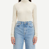 Introducing Samsoe Samsoe's Ester T-N in Warm White, a long-sleeve turtleneck with a slim-fit silhouette, making it perfect for layering underneath other styles. The soft cotton and modal jersey fabric has added stretch to support the slender silhouette of this versatile roll neck tee.