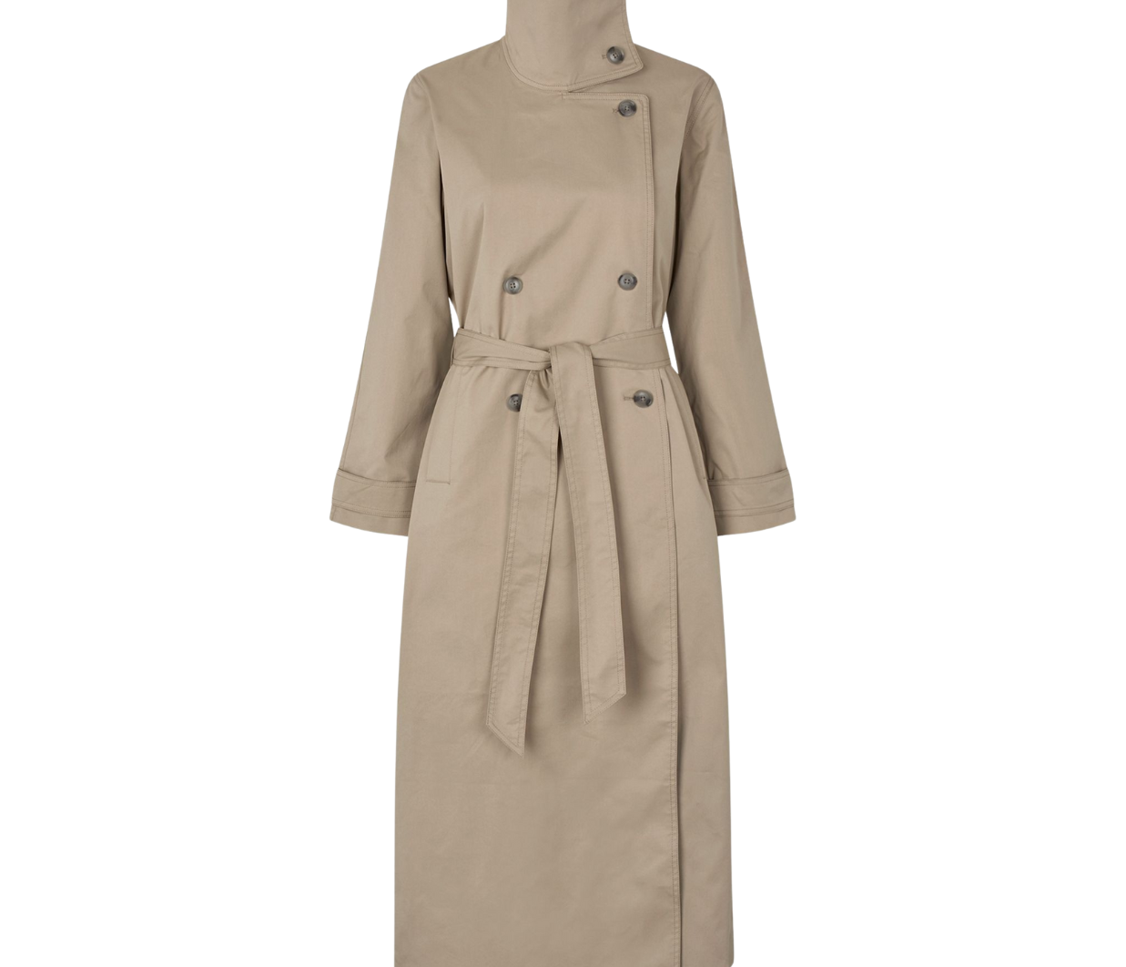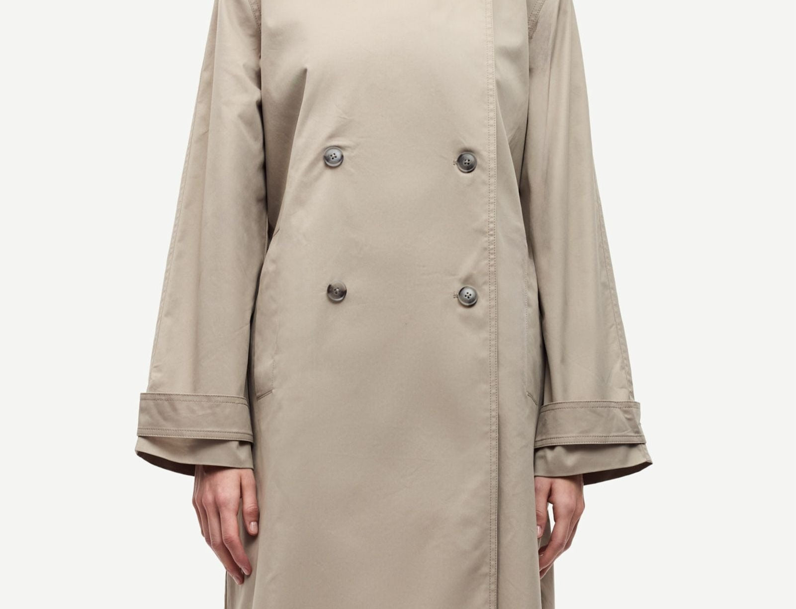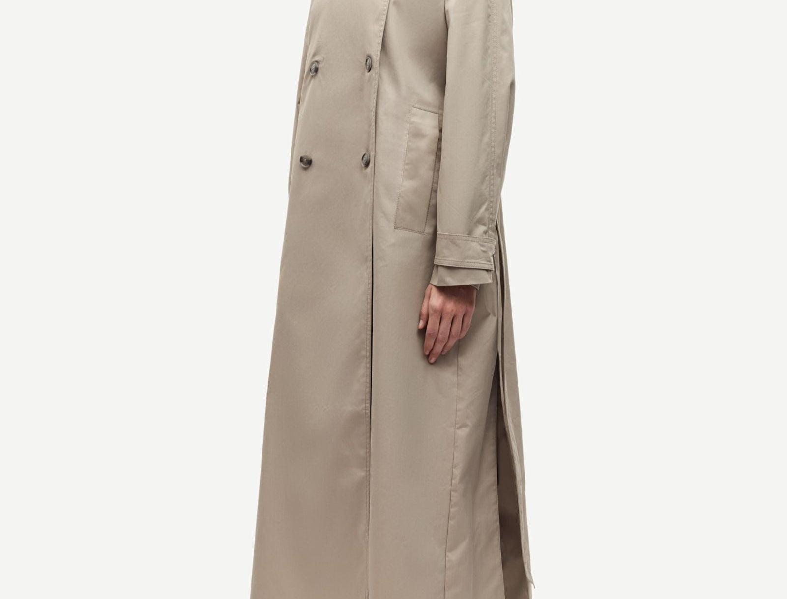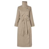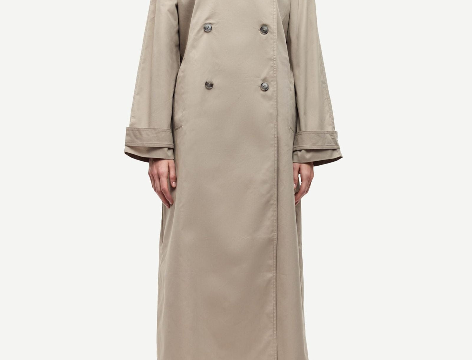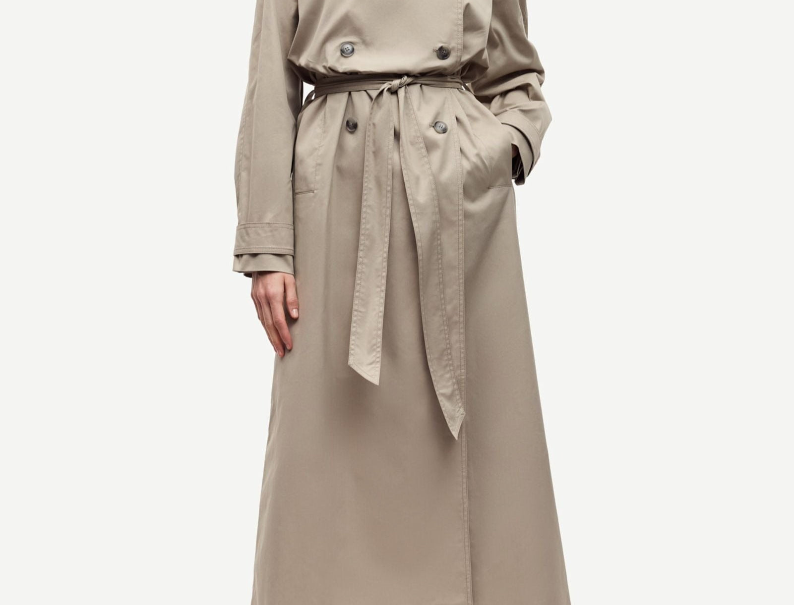 Introducing Samsoe Samsoe’s Sahayes Coat in Aluminium, a double-breasted trench coat in a brown beige khaki hue. Designed with a high funnel neck and detachable belt at the waist, this full-length Sahayes coat blends utilitarian detailing with a modern finish. Featuring welt pockets on the front, inside patch pockets, and a back vent for ease of movement. The perfect outerwear piece for cold weather days.