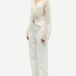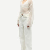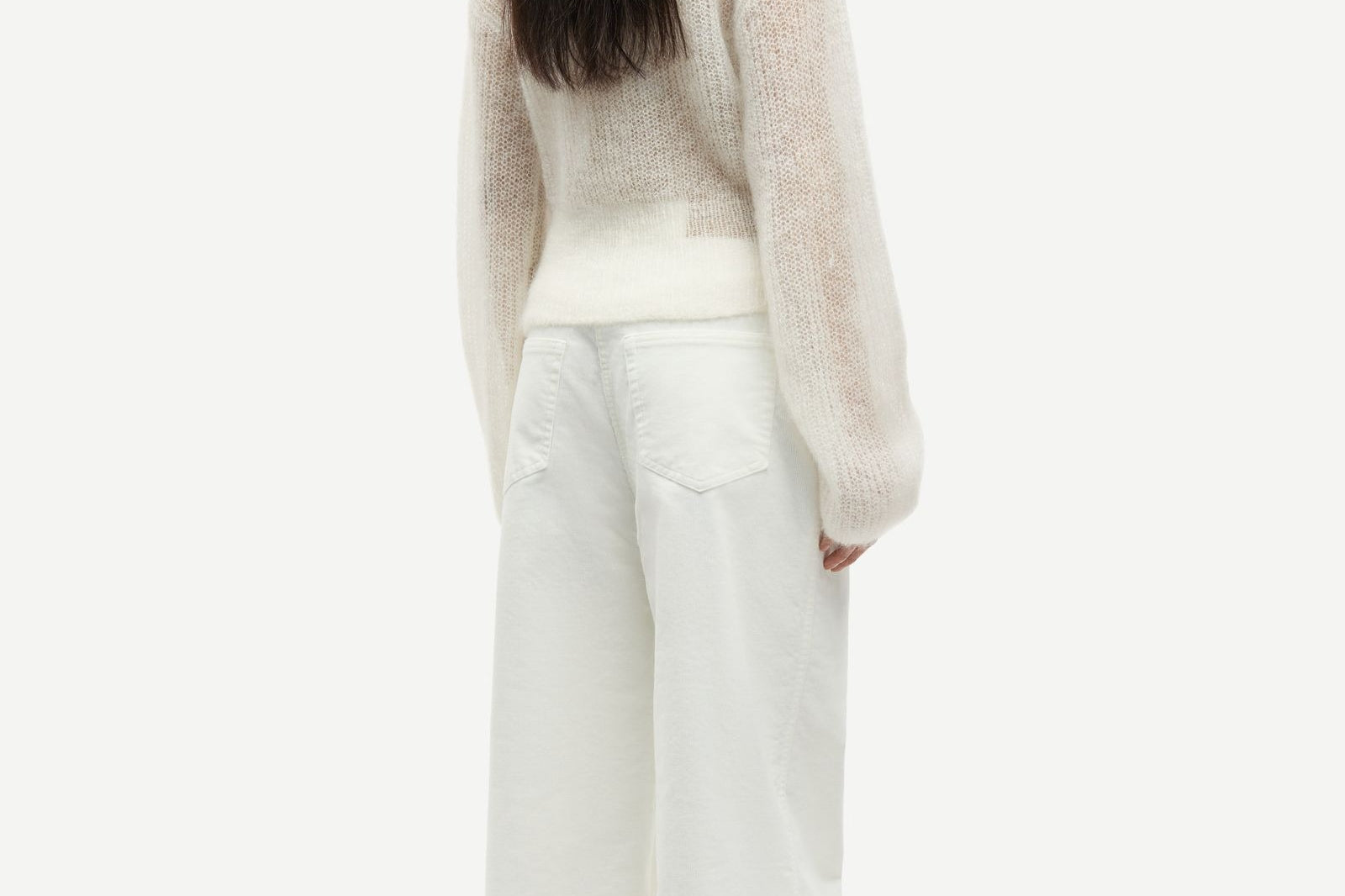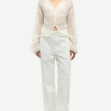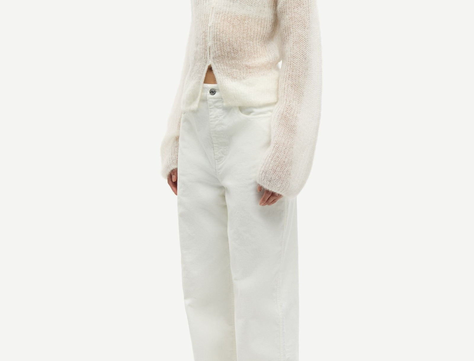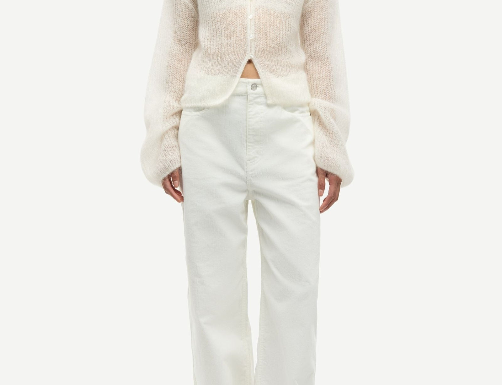 Introducing Samsoe Samsoe’s Sashelly Trousers in Clear Cream, low-rise straight-leg pant trousers in a white-ivory hue. Designed with a five-pocket construction and belt loops, these cream corduroy pants combine casual ease with a structured finish. The Sashelly Trousers are a versatile wardrobe essential for both everyday wear and elevated styling.