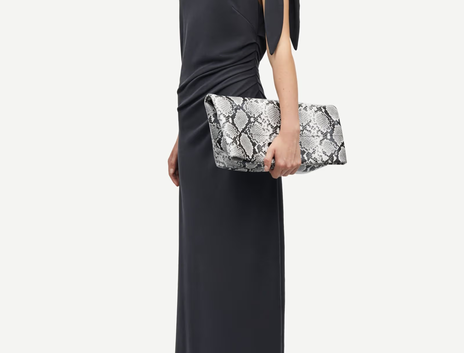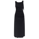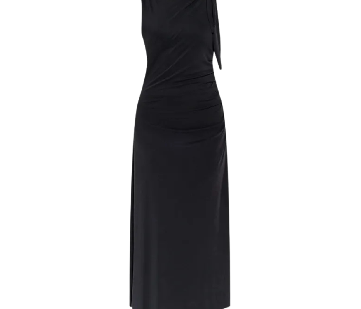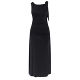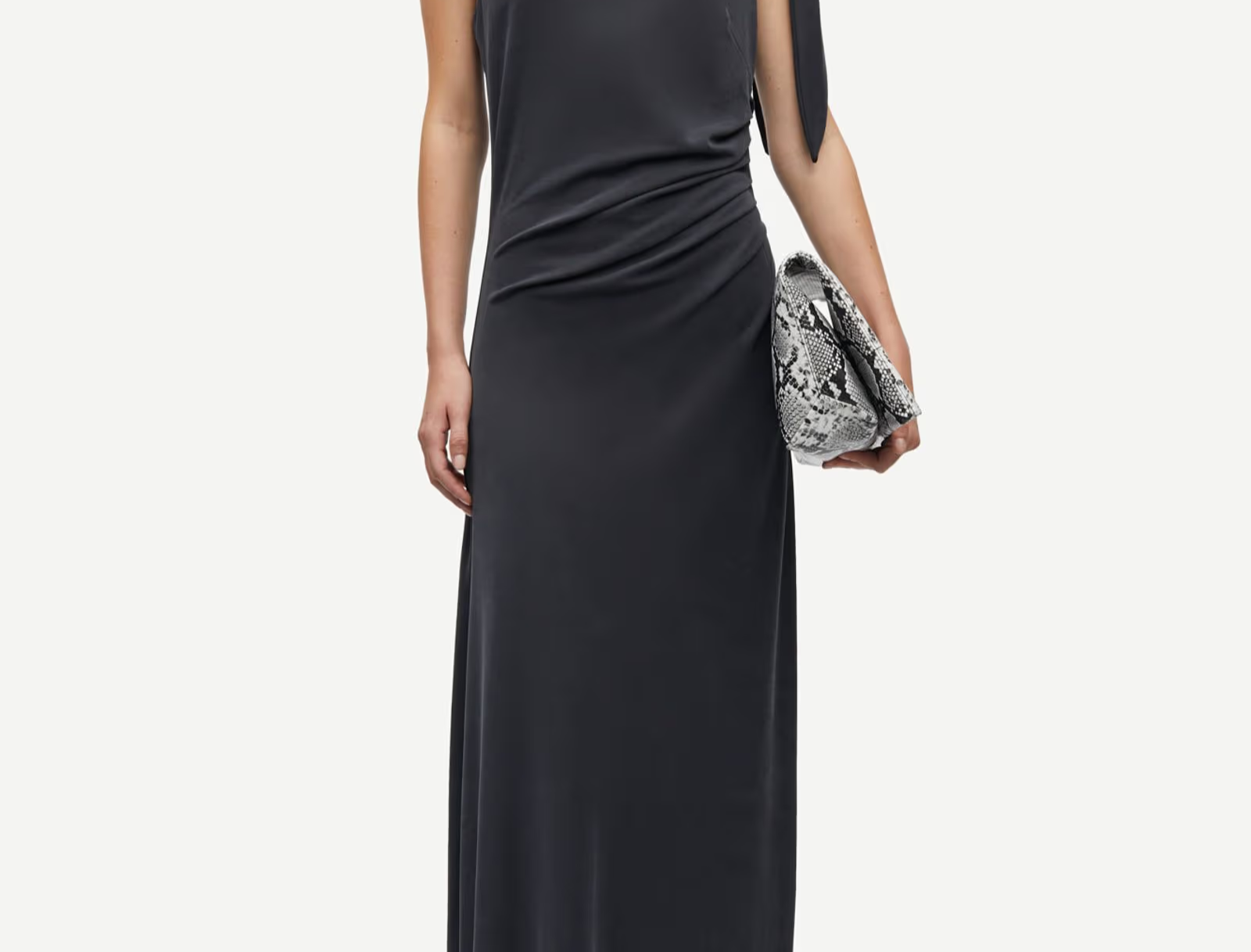 Introducing Samsoe Samsoe’s Sasus Dress in Black, a jersey maxi-length dress silhouette in a black hue. The Sasus dress features a self-tie detail at the shoulder with a high asymmetrical neckline and a fluid draped silhouette. Perfect as a black evening dress, formal maxi, or versatile piece for day-to-night styling.