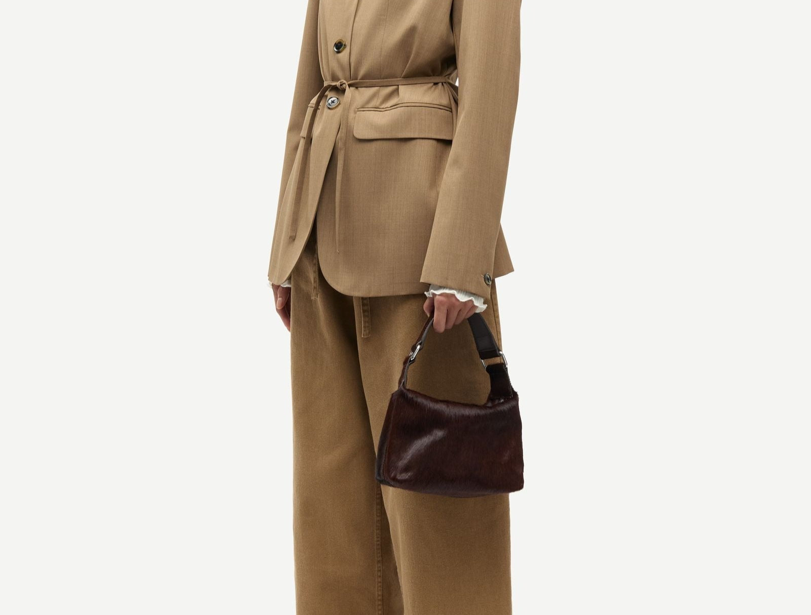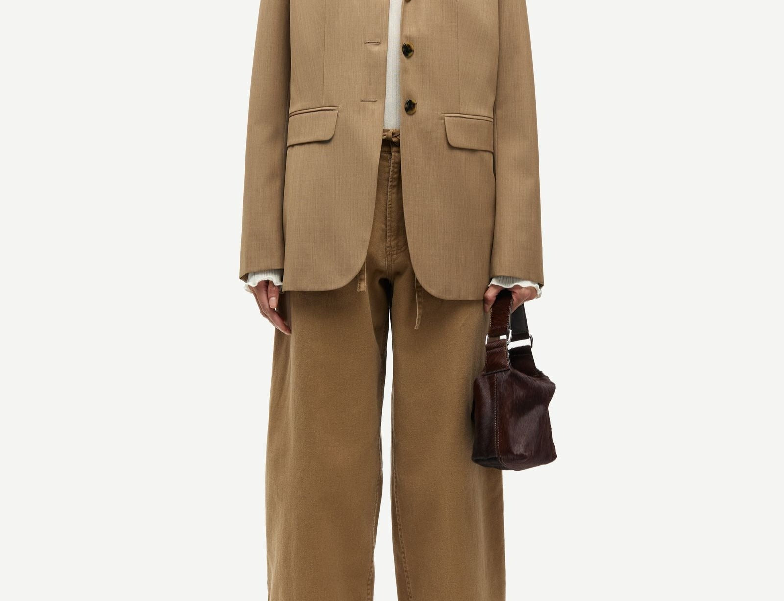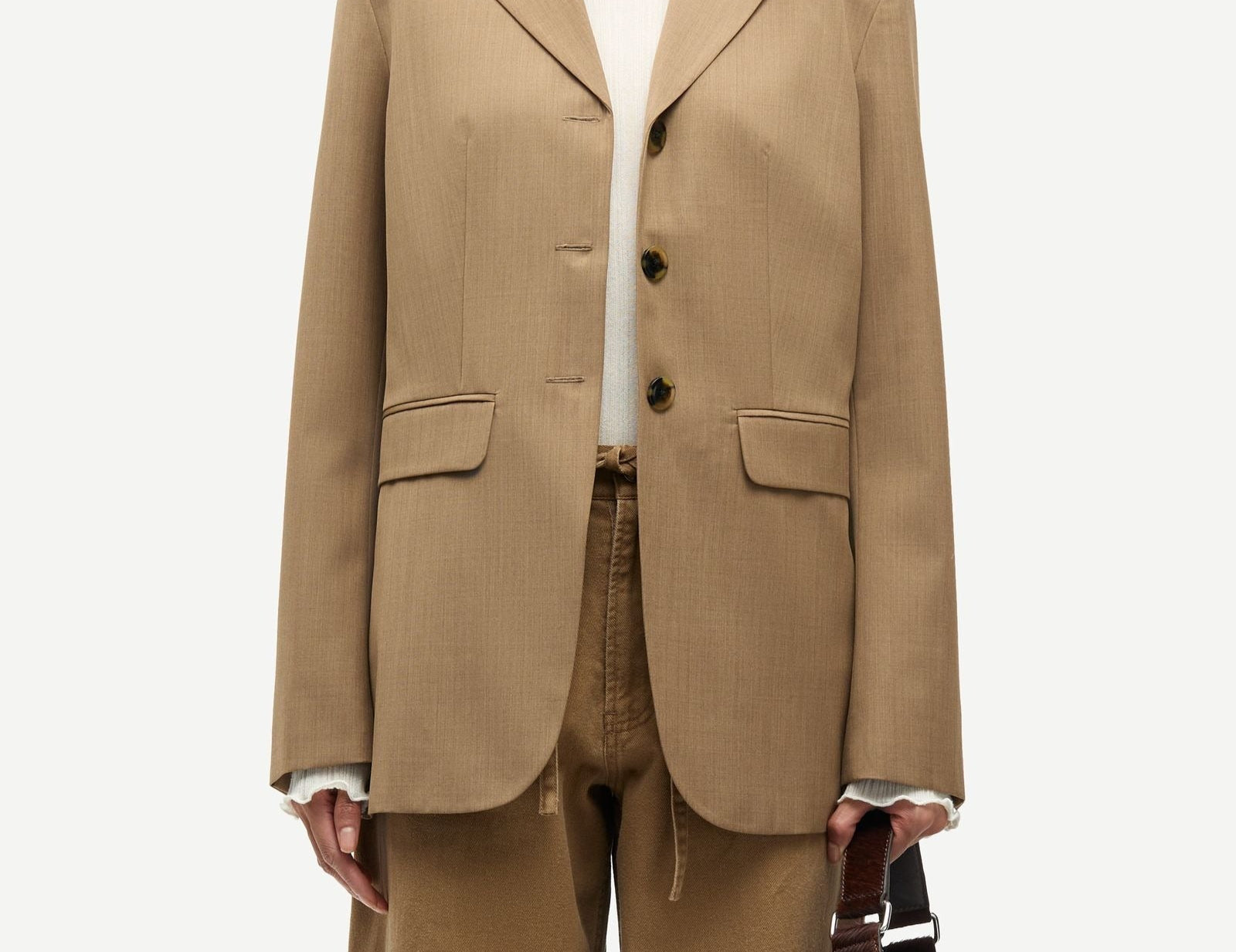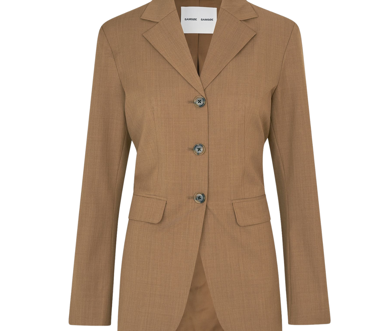 Introducing Samsoe Samsoe’s Satove Blazer in Otter Melange, a tailored single-breasted blazer in a brown otter melange hue. Designed with notched lapels, structured shoulders, and buttoned cuffs, this tailored jacket is finished with welt pockets on the front and a functional inside pocket. A detachable self-tie strap at the back of the waist allows the blazer to be styled cinched or relaxed. The Satove blazer is a versatile piece that can be styled for office wear, smart casual looks, or evening layering.