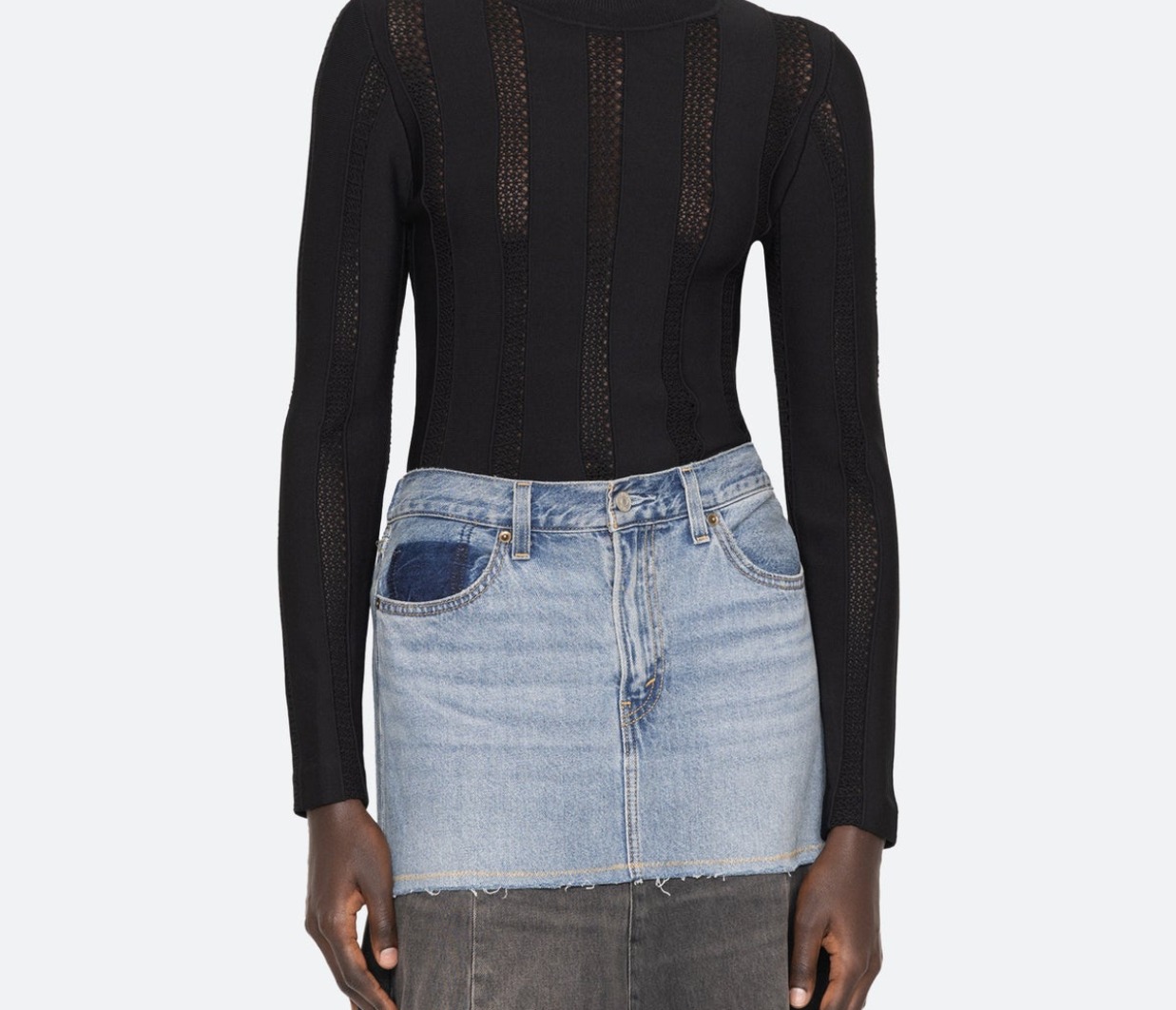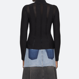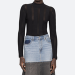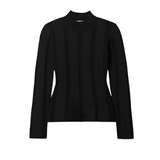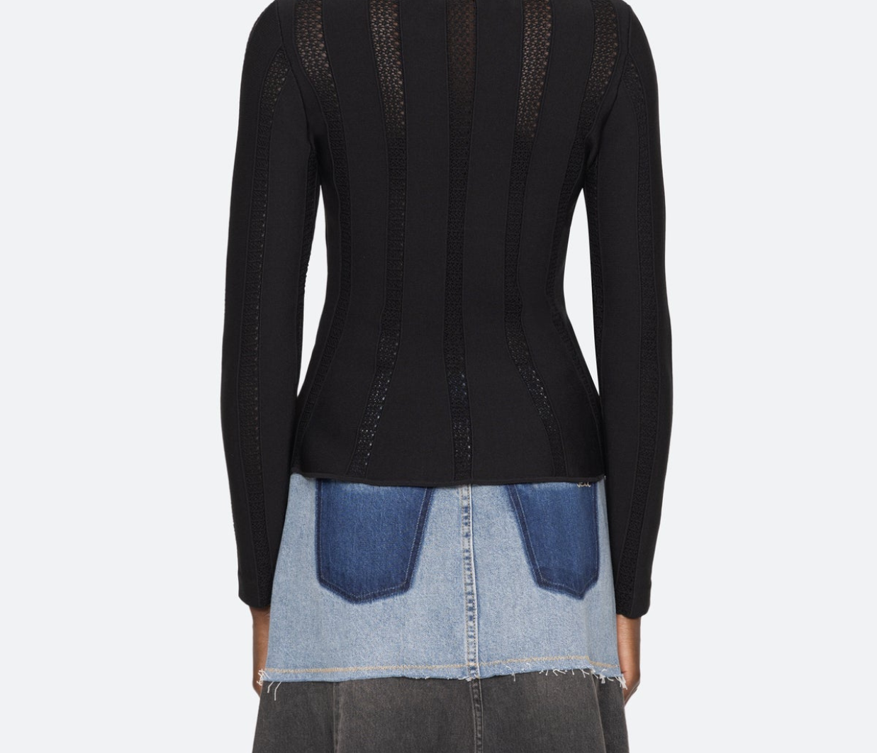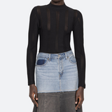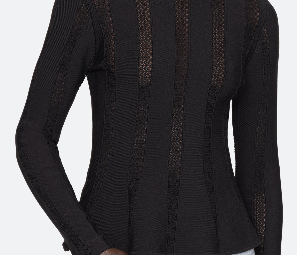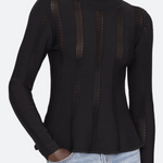 Introducing Devon Knit Peplum Long Sleeve Top a sleek, versatile essential for your wardrobe. Designed for a flattering slim fit, this top features delicate sheer accents.