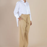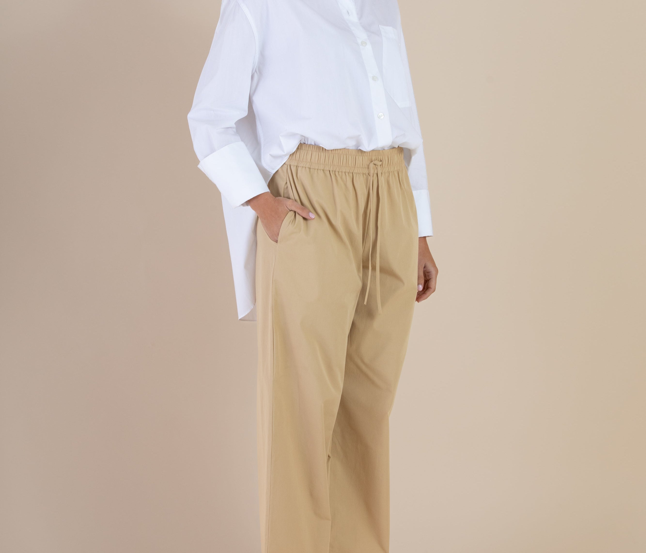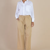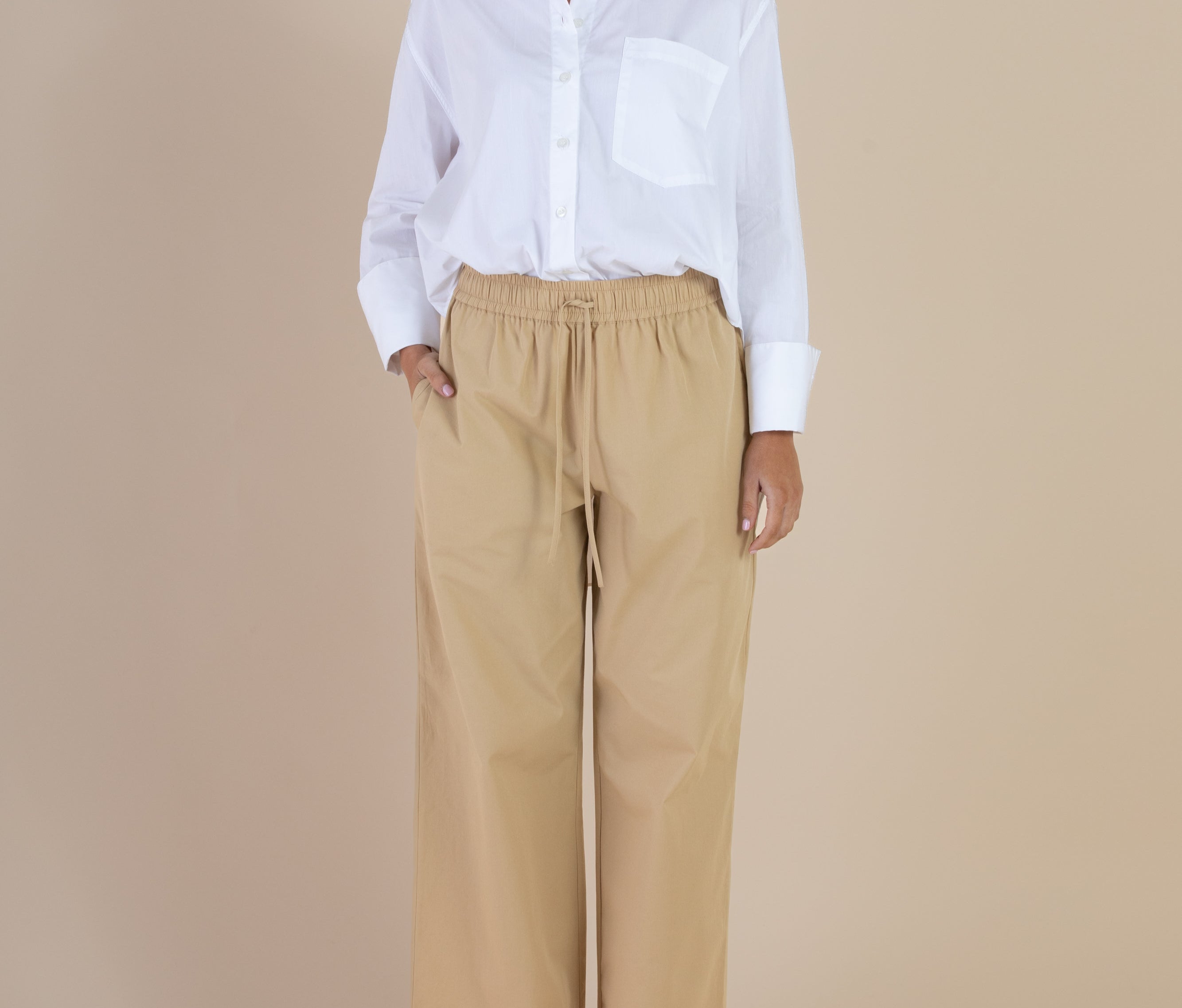 Introducing SELFE’s Blanche Pant in Camel, a relaxed straight-leg pant silhouette in a golden sandy brown color. Crafted from smooth, breathable cotton, the Blanche Pant features an elasticated waistband with a self-tie closure, offering comfort without compromising on refinement. Perfect for both elevated styling and relaxed days.