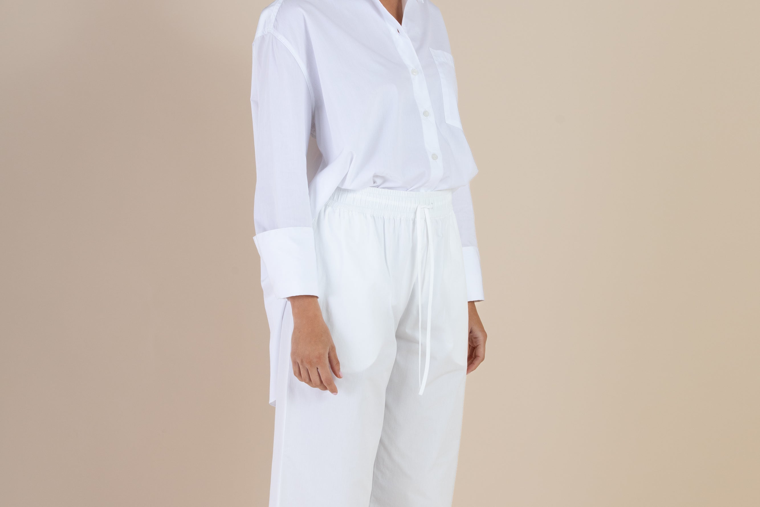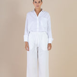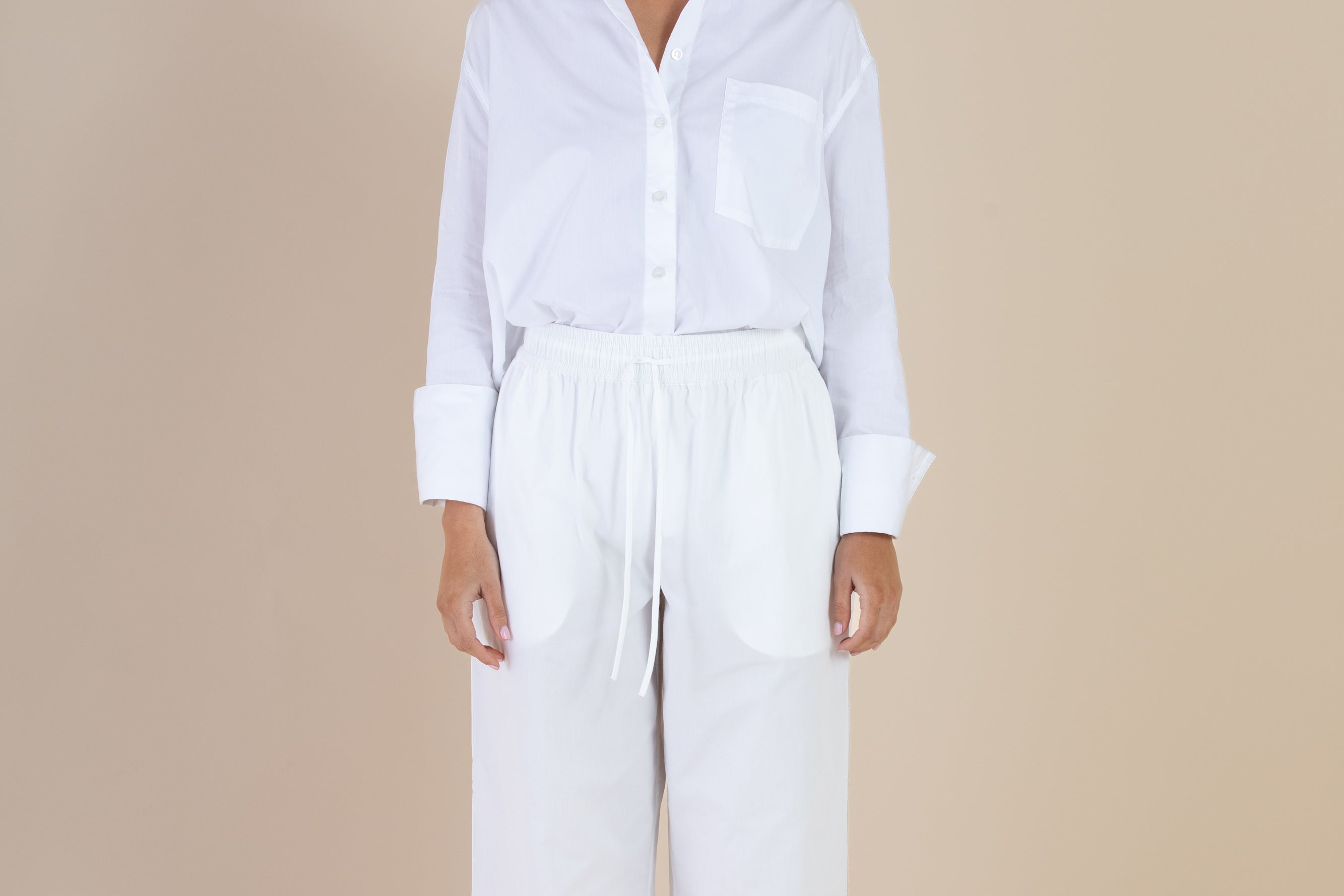 Introducing SELFE’s Blanche Pant in White, a relaxed straight-leg pant silhouette in a golden sandy brown color. Crafted from smooth, breathable cotton, the Blanche Pant features an elasticated waistband with a self-tie closure, offering comfort without compromising on refinement. Perfect for both elevated styling and relaxed days.