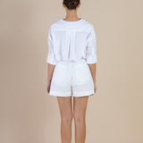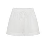 Introducing SELFE's Poppy Short in White, a relaxed mini short silhouette in white. Designed in an A-line silhouette, the Poppy short features an elasticated waist with a self-tie detail that ensures an effortless fit, while front pockets and back patch pockets bring a practical, relaxed finish. Perfect essential for warm weather.