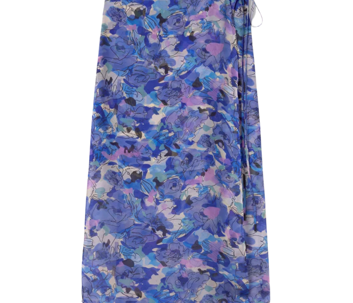 Introducing Silk Laundry's Colour Me Chiffon Wrap Skirt in Cornflower Floral, a chiffon wrap skirt in cornflower floral. Designed with a sheer, lightweight fabrication with blue floral canvas. Perfect for a summer's day look.