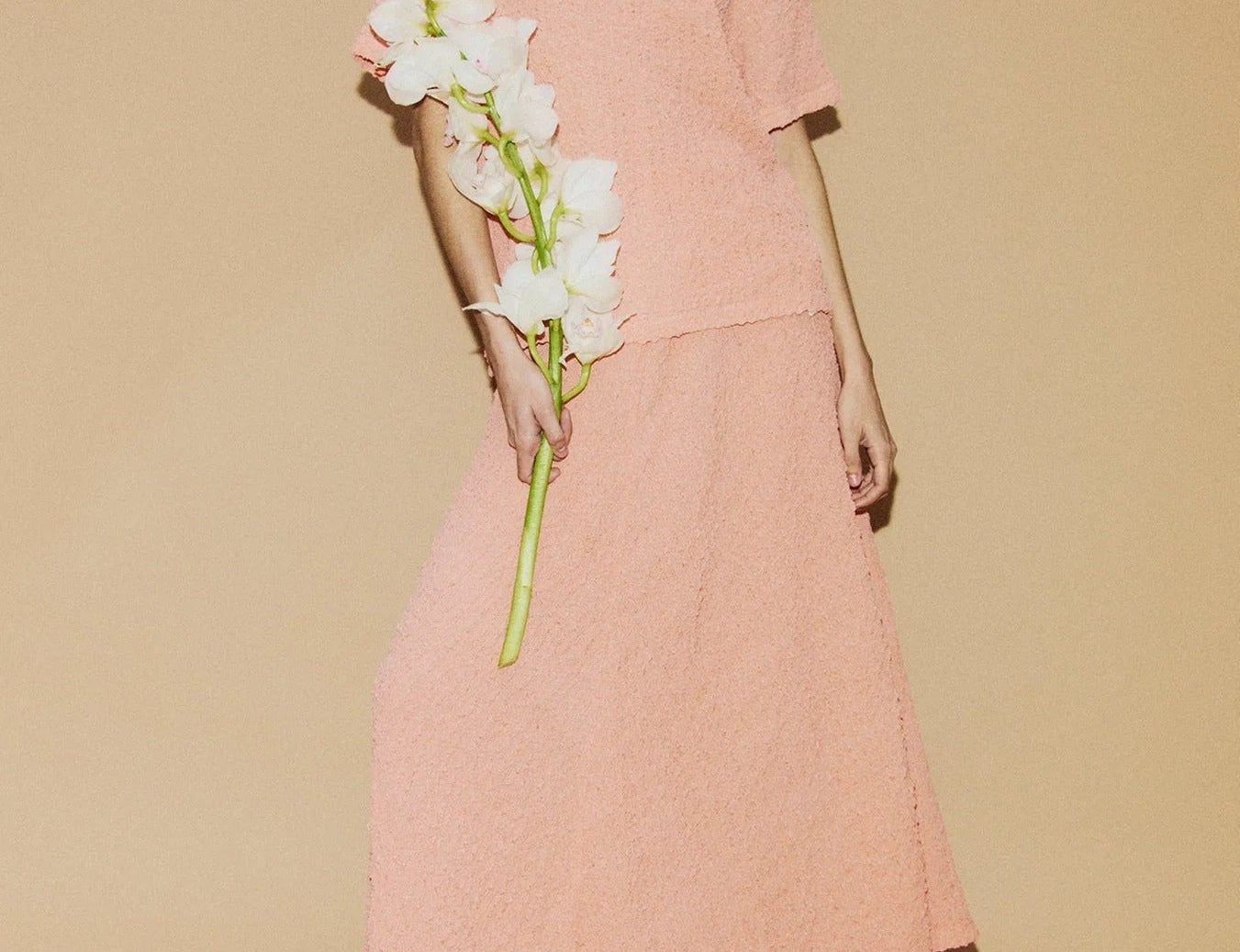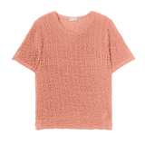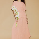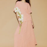 Introducing Silk Laundry's Pebble Tee in Orchid, a boxy t-shirt silhouette in pink orchid. The Pebble Tee is crafted from tactile pebble finish, with a crew neckline with a relaxed draping and soft hand feel. Style it with the Pebble Skirt in Orchid for a coordinated look, or wear it with white denim for a casual summer look.