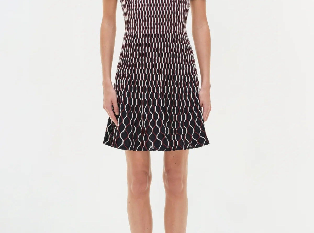 Introducing the Simkhai Baylor Knit Mini Dress, a short-sleeved, mini-length dress silhouette in a textured knit fabrication. Designed with a crew neckline and flared skirt for easy wear. The dress pulls on effortlessly and is unlined for a light, breathable fit.