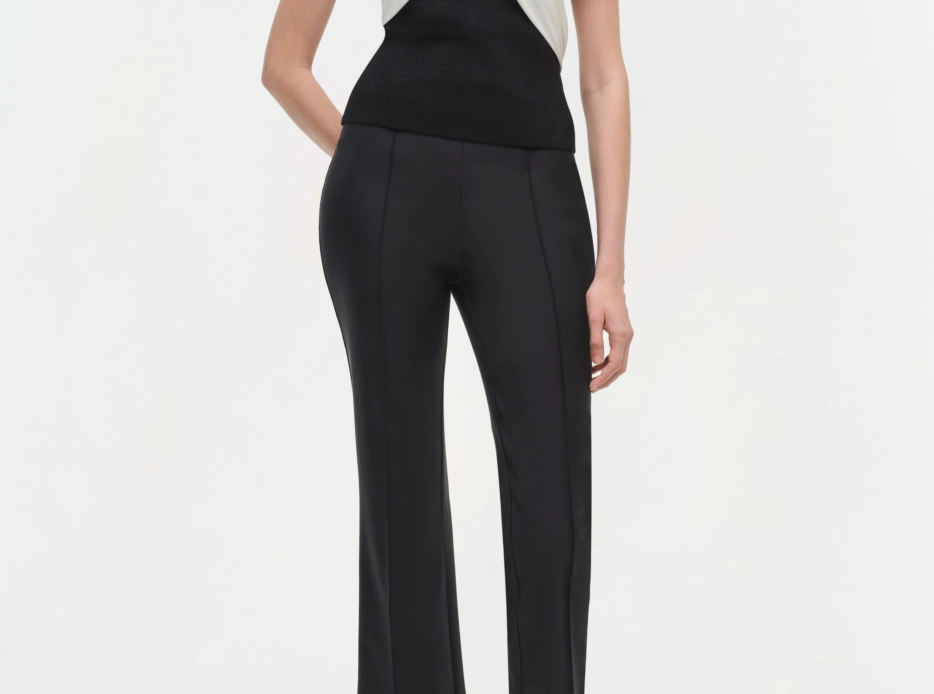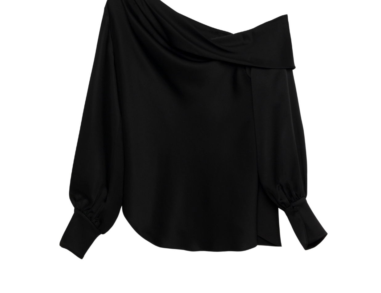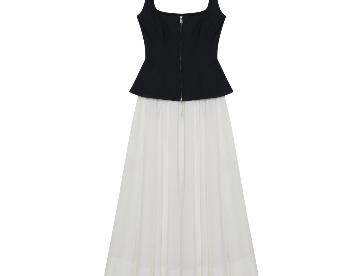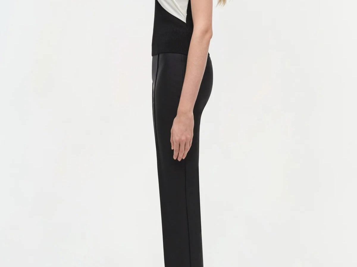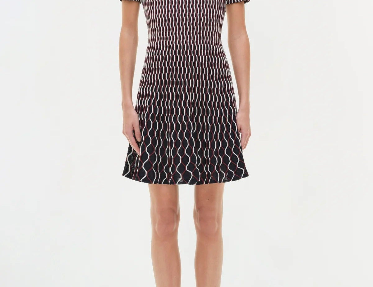 Introducing Simkhai's Celiana Top in Black Multi, an off-shoulder top silhouette featuring a twist-front crossover design in a knitted Black and White hue. The fitted top includes a concealed side zipper for a seamless finish and is unlined for light wear. Perfect for day to night elevated looks.