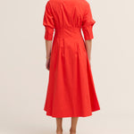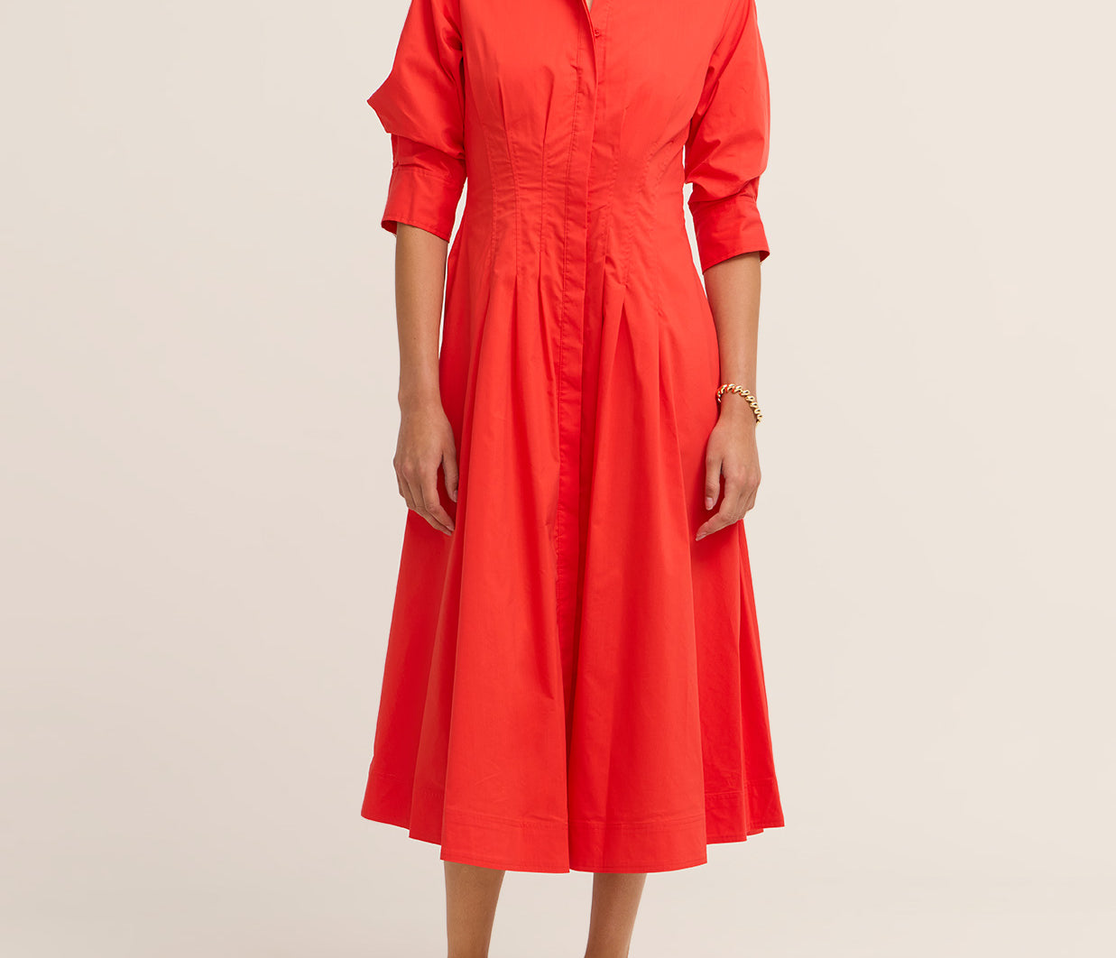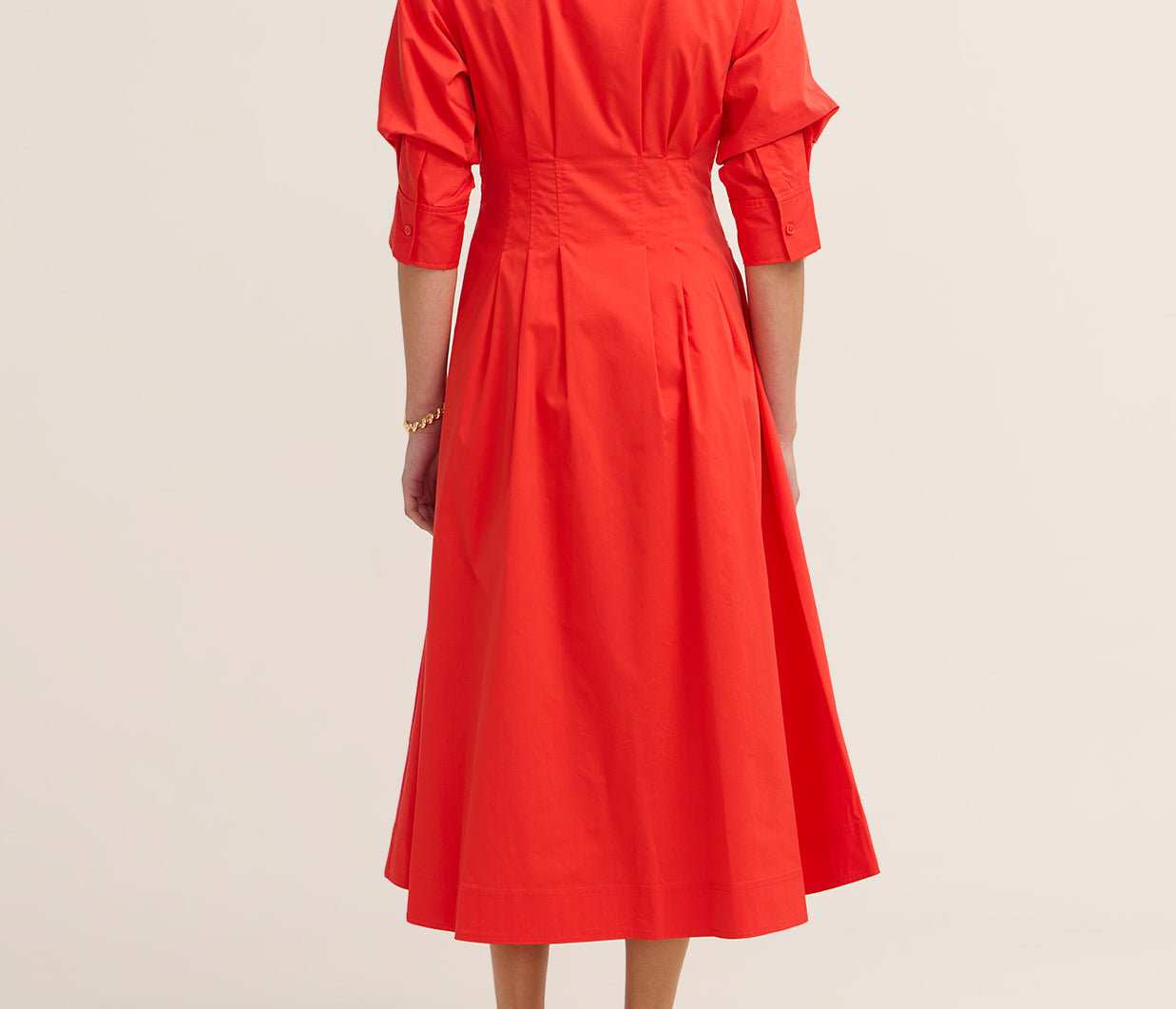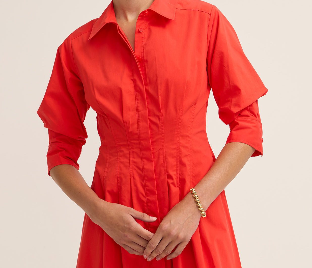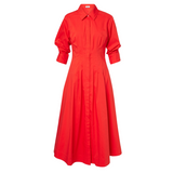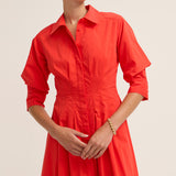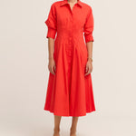 The Jazz Pintuck Midi Dress in Fiery Red is a chic and contemporary take on classic elegance. Featuring a flattering midi length, this dress combines a fitted bodice with pintuck detailing to create a bold, modern silhouette. Crafted from premium fabric, the Jazz dress is perfect for both day and night occasions, offering effortless style that is sure to make a statement.
