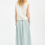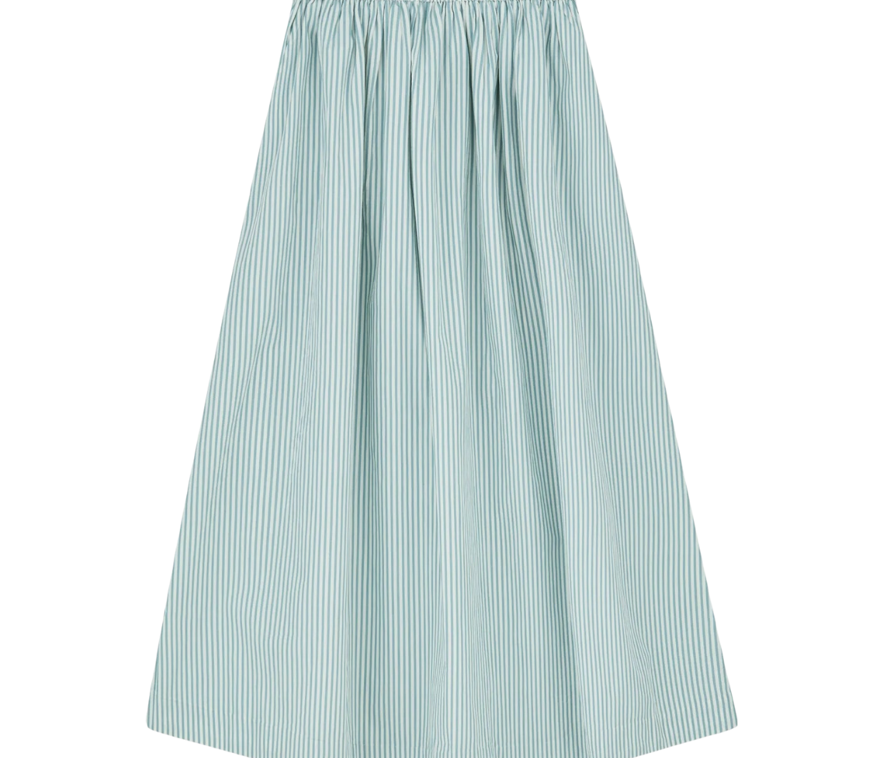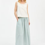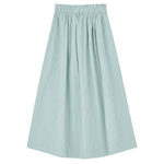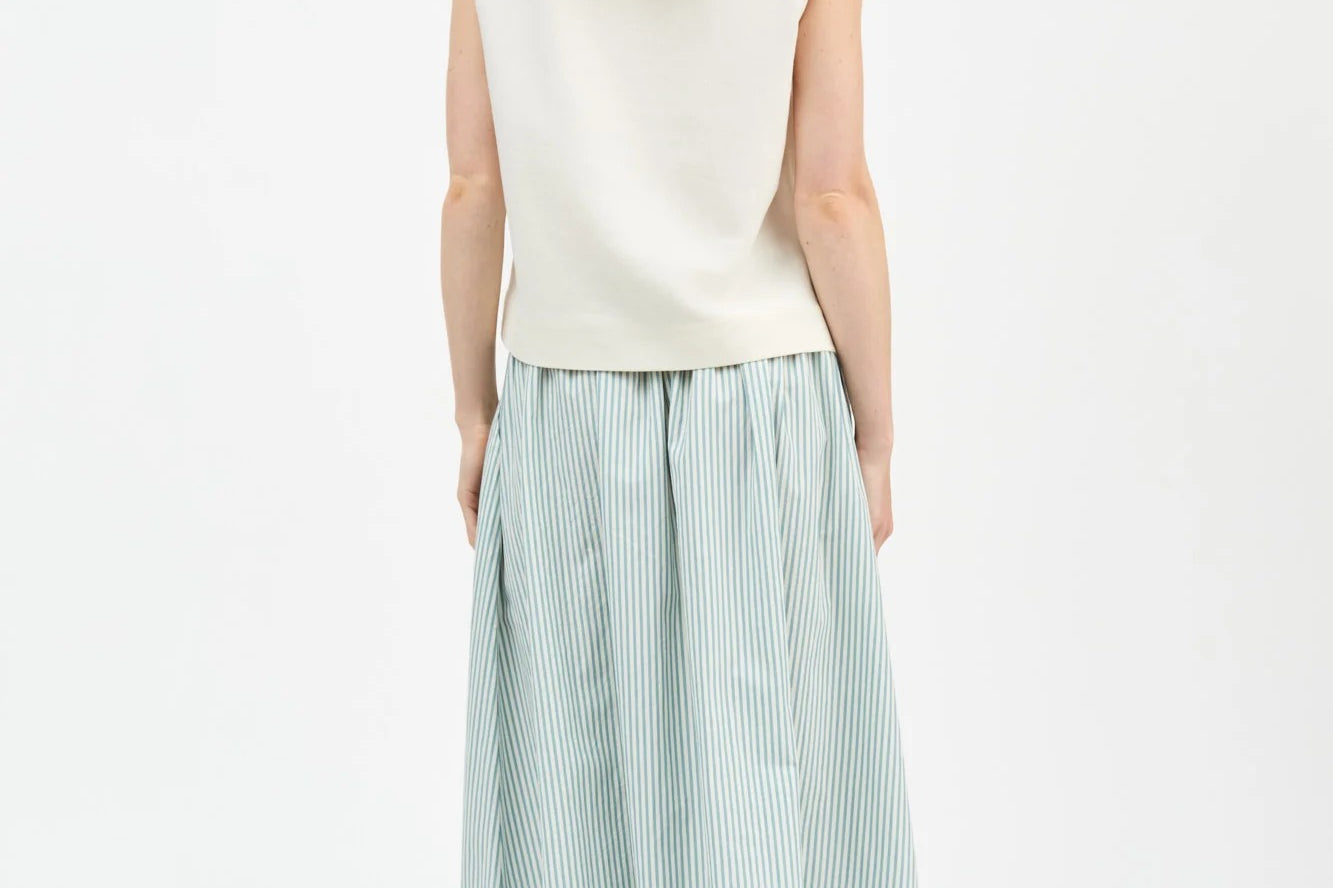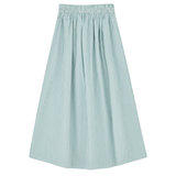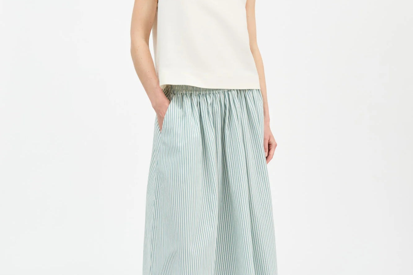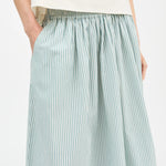 The Dagny Skirt in White Aqua Stripe, a voluminous skirt with elastic waist and practical side pockets