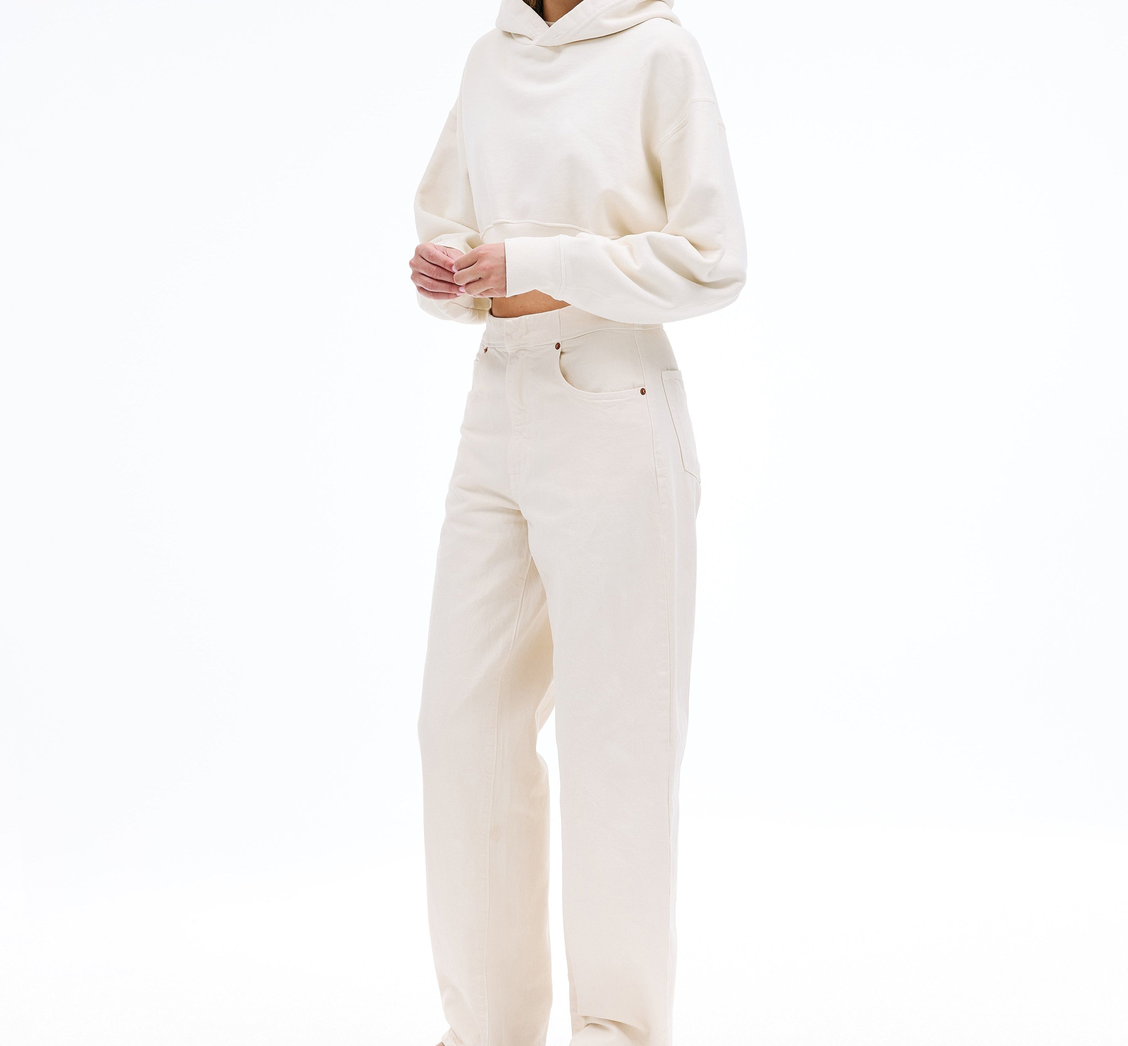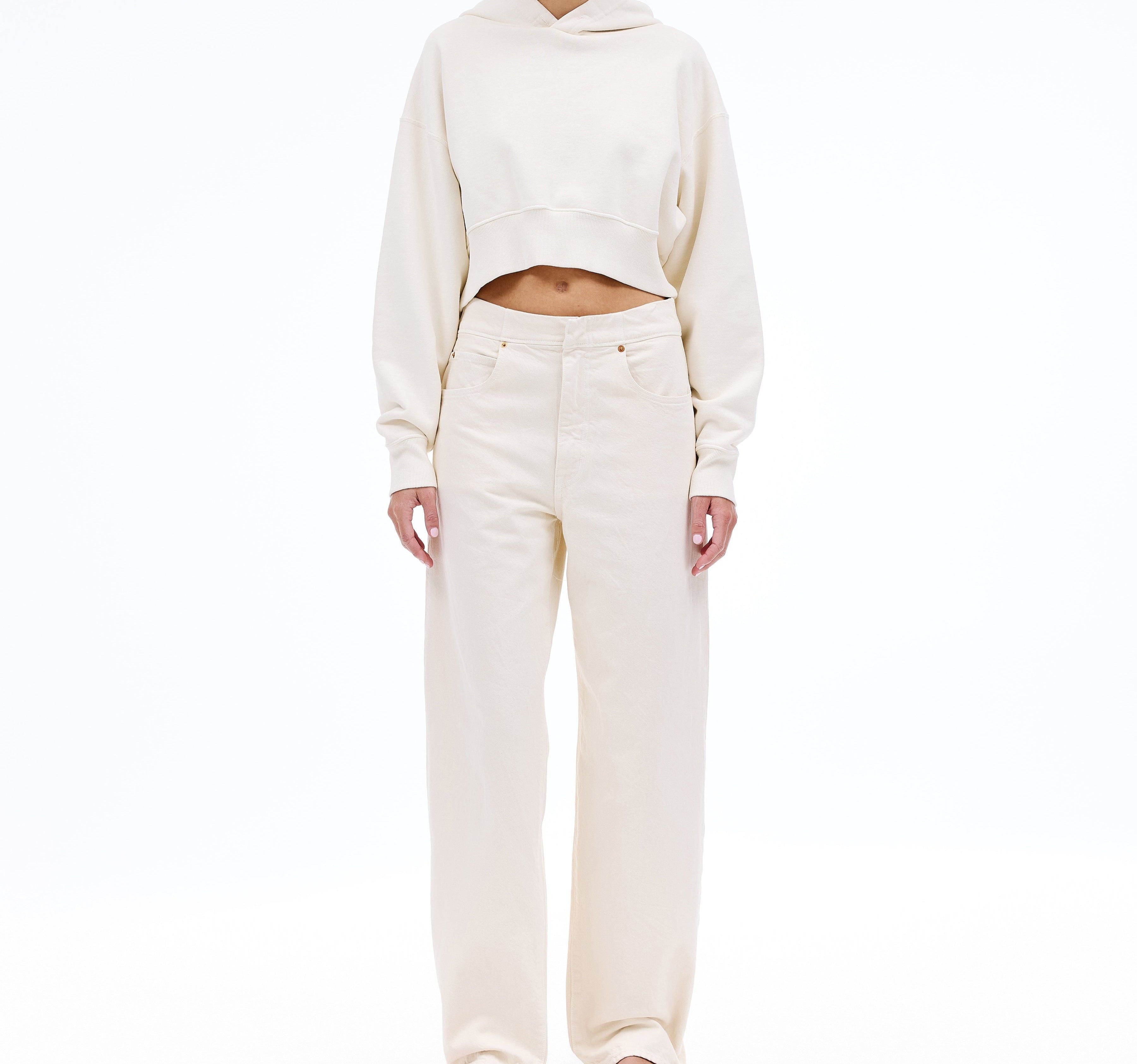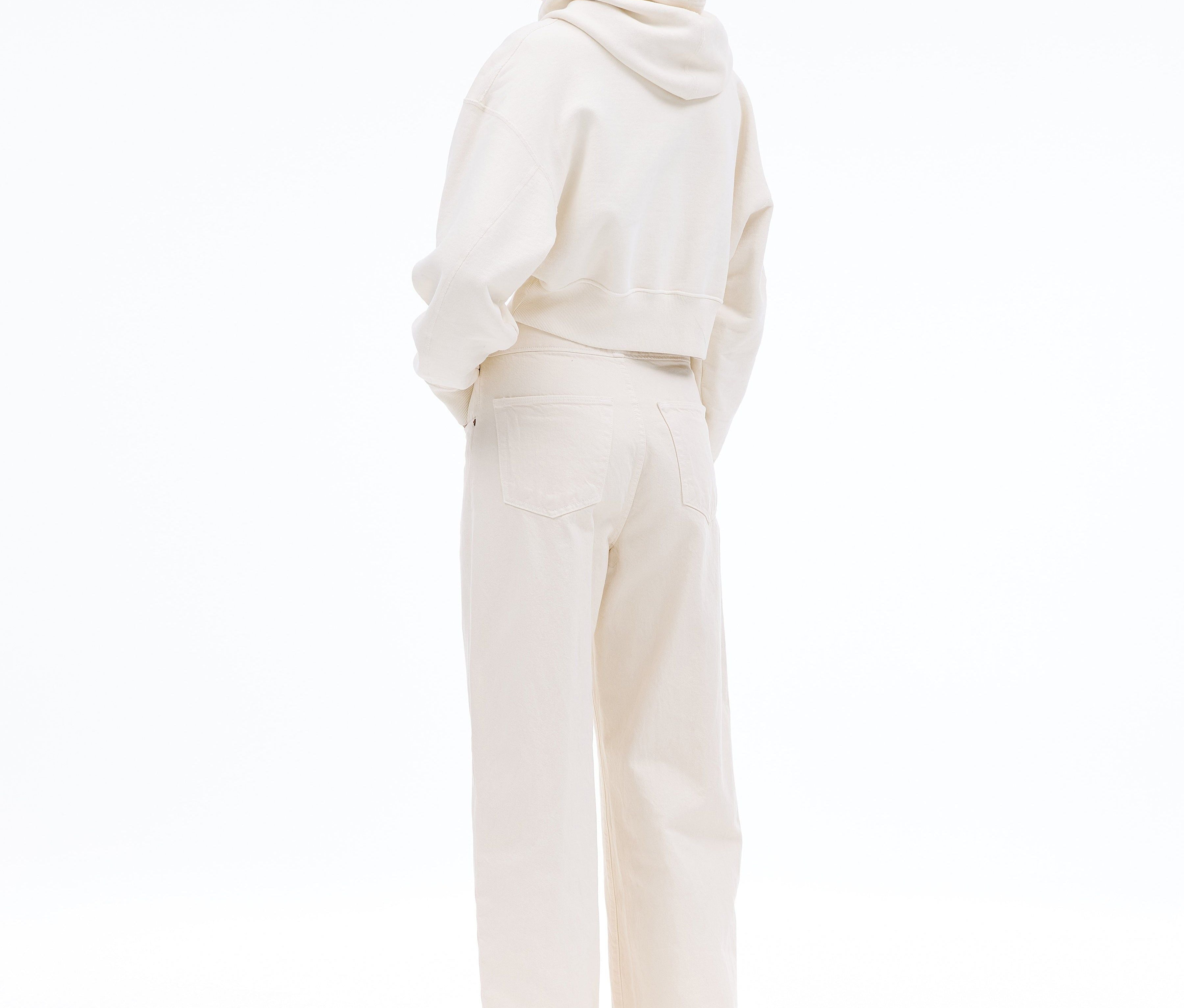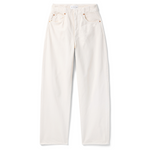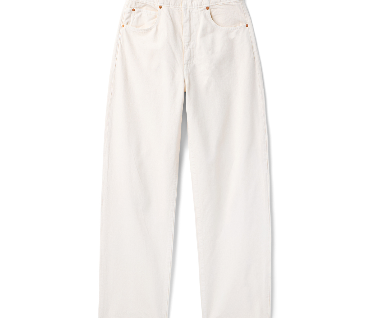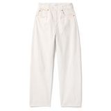 Introducing SLVRLAKE's Camilla High Rise Curve Jean in Ecru features a sculptural barrel-leg silhouette enhanced by refined trouser details. Finished in a vibrant orange and accented with hardware touches, it brings a bold, fashion-forward edge to everyday dressing.
