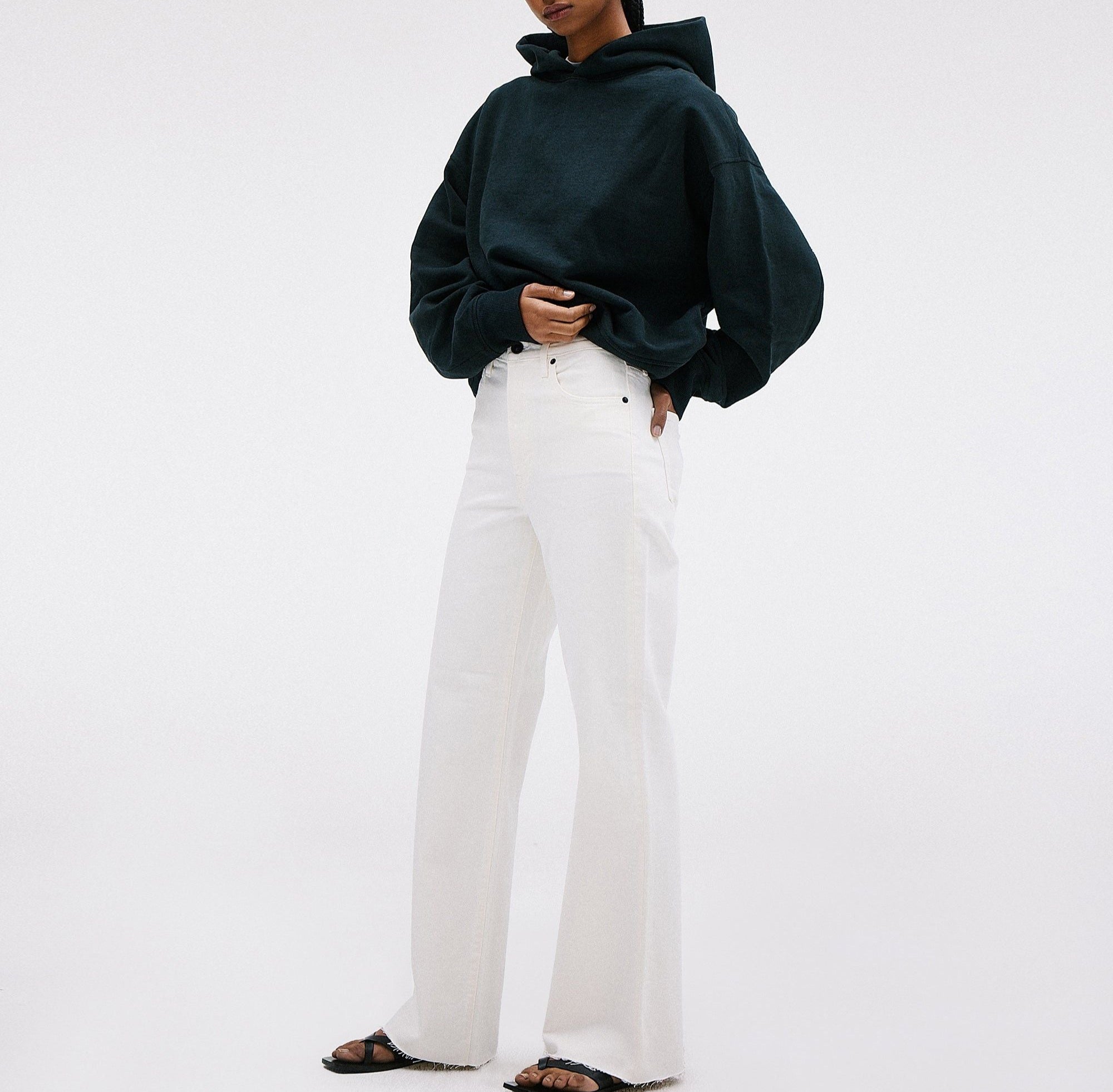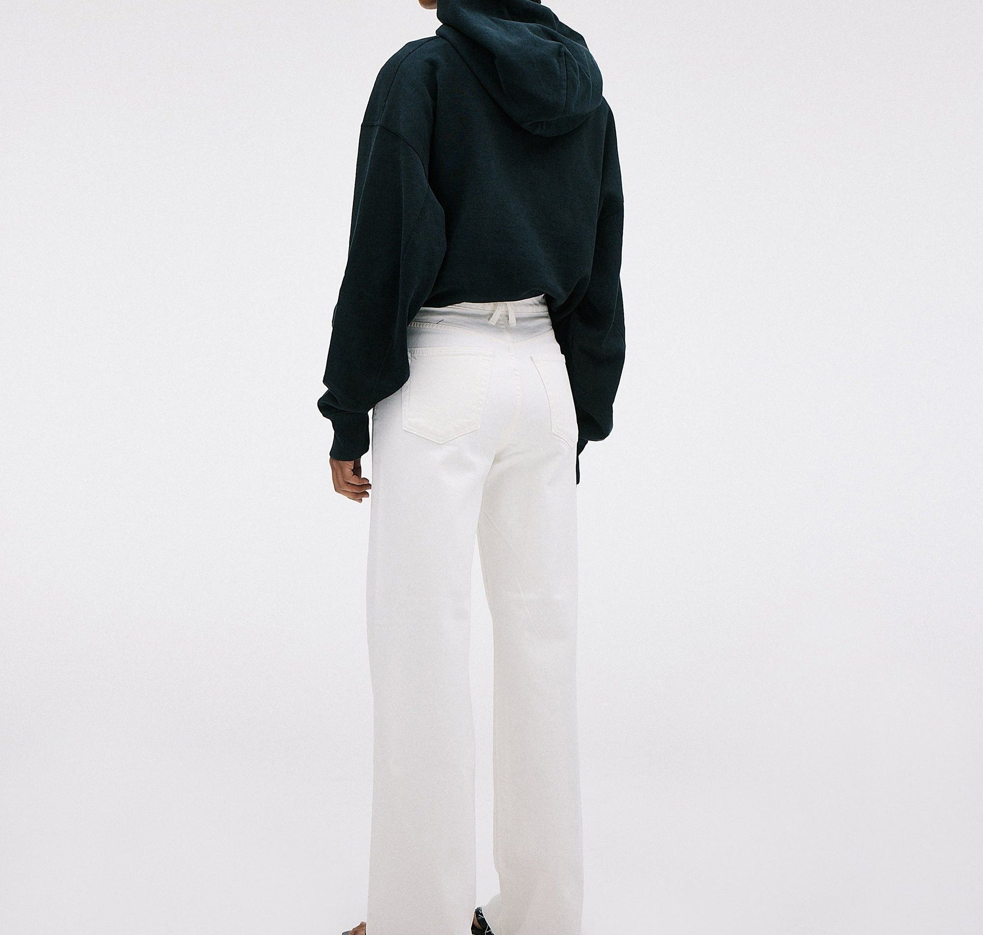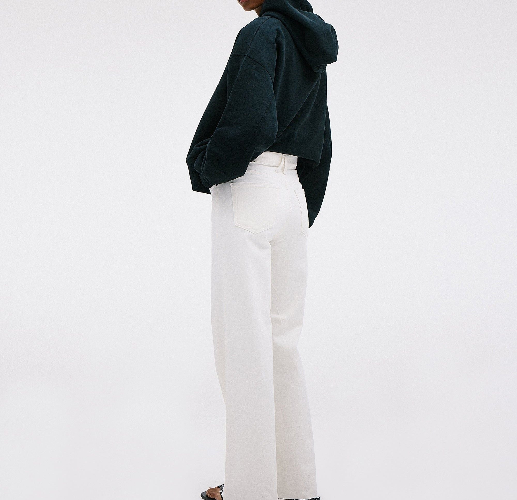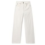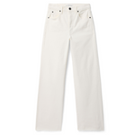 Introducing SLVRLAKE's Grace High Rise Wide Leg Denim Jean in White designed with a high-rise waist and a wide-leg silhouette that effortlessly elongates the leg. Crafted from comfort stretch fabric, it offers lasting shape and ease, blending style with everyday wearability.