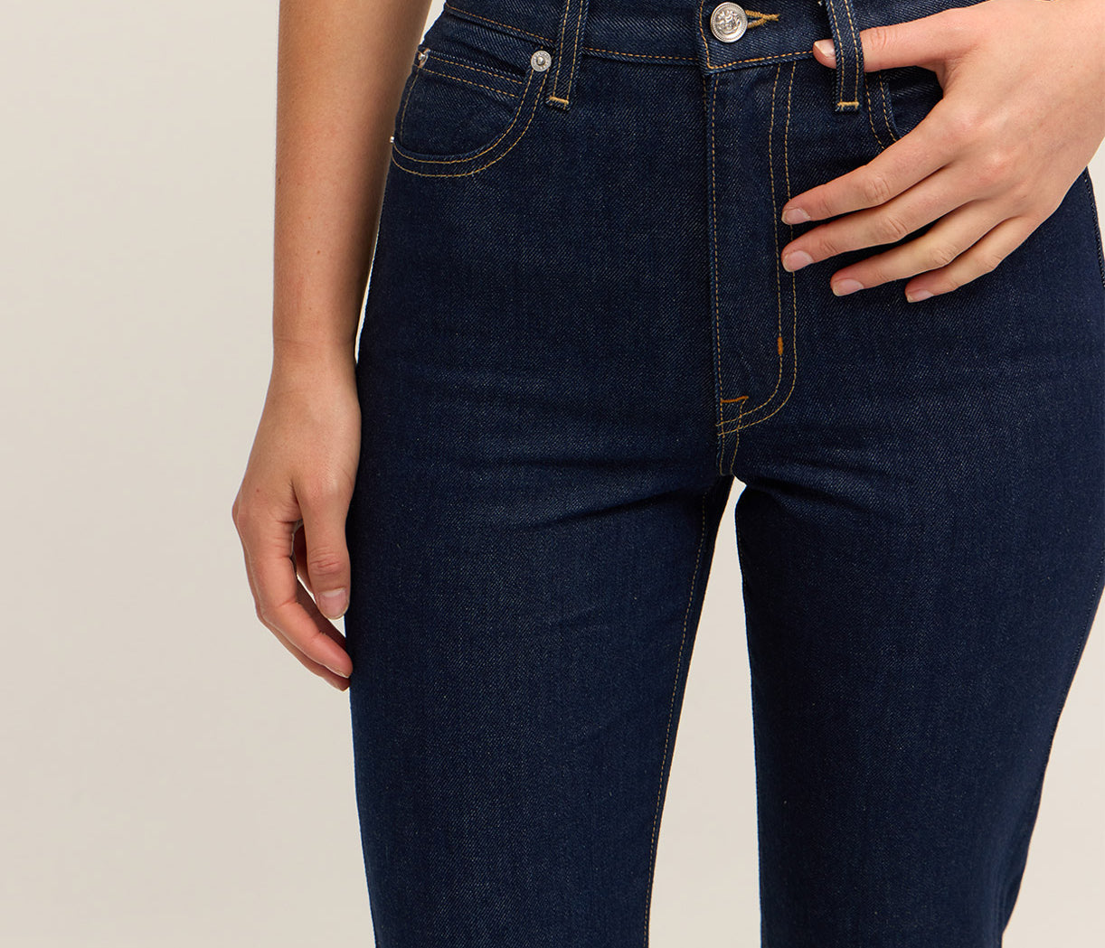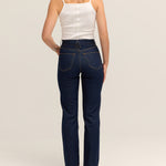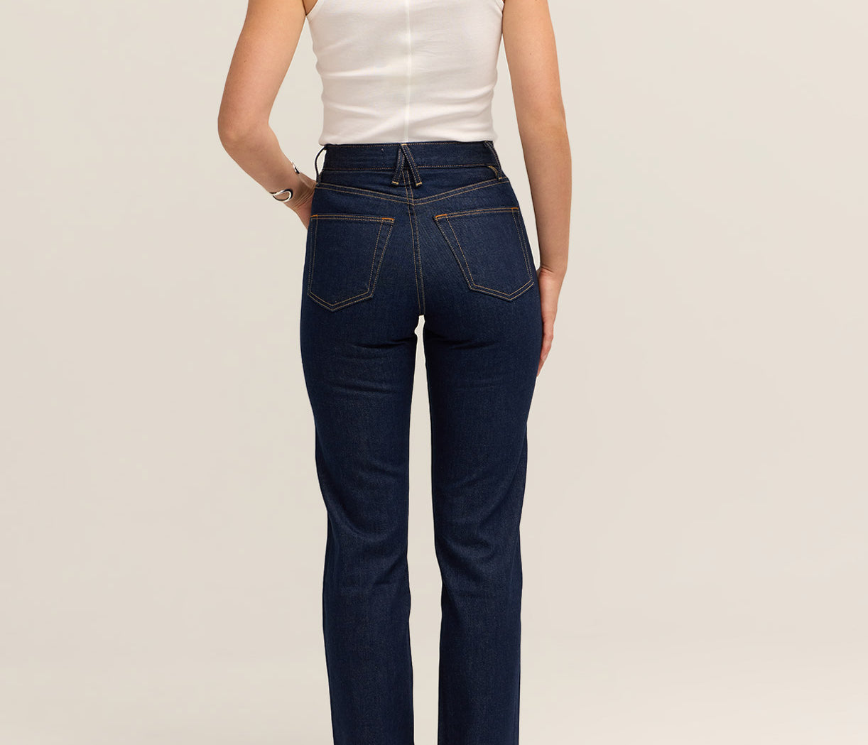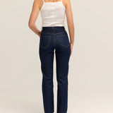 Introducing London High Rise Straight Leg Jean in Midnight Mile, SLVRLAKE’s most coveted silhouette, revered for its perfect fit and flattering shape. Designed to enhance the feminine form, this jean features a high-rise waist that elongates the legs, paired with a sleek straight leg cut for a timeless, streamlined look. Crafted from premium denim in the rich, deep shade of Midnight Mile, it offers a sophisticated yet versatile style, ideal for day-to-night wear.