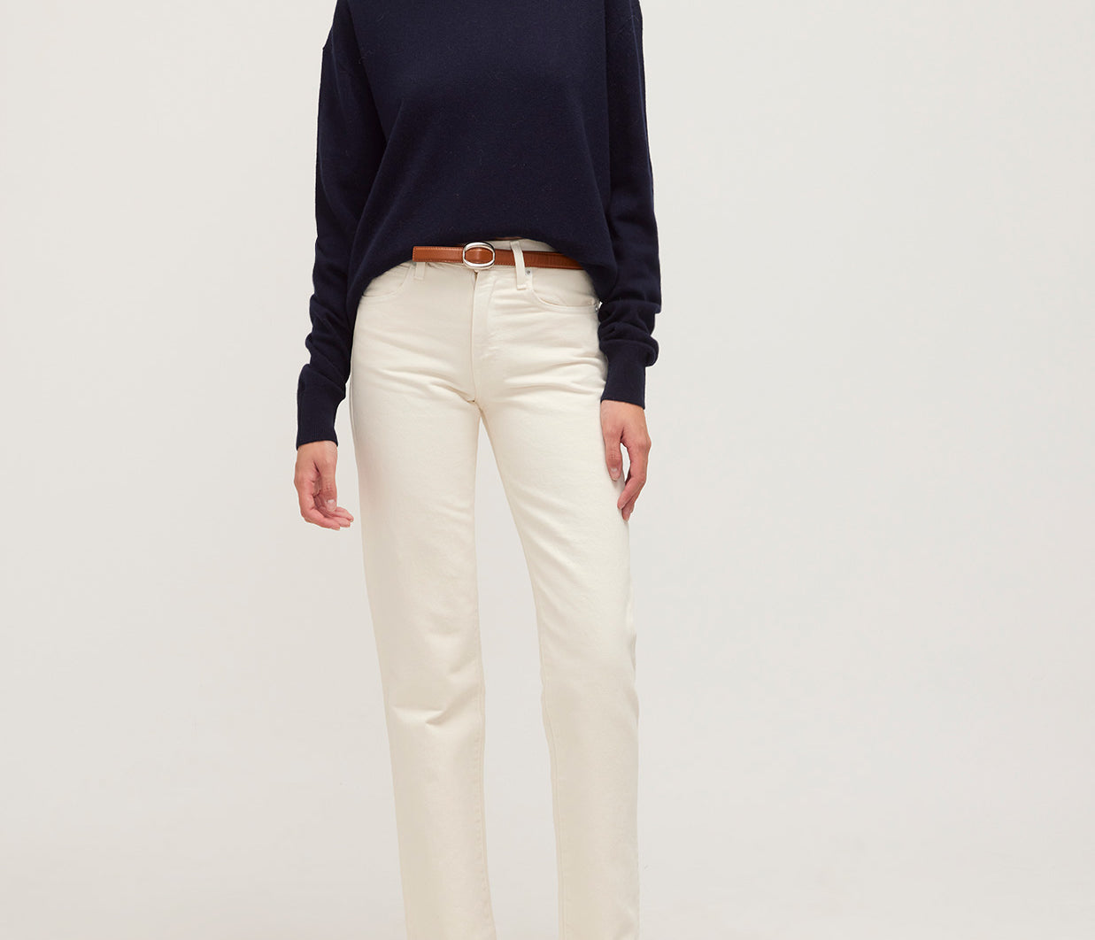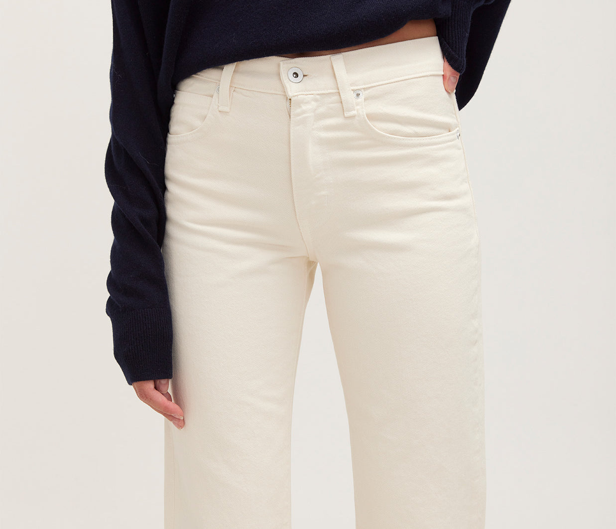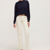 Sophie Long Mid Rise Straight Leg Jean in Cream
