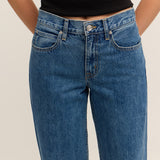 Introducing Tess Long Curve Jean in Satisfaction a relaxed with a refined style. Featuring a curved leg silhouette and a low-rise waist, Tess offers a flattering, easygoing fit that enhances your natural shape. Crafted with meticulous attention to detail, this jean is designed to provide both elegance and freedom of movement.