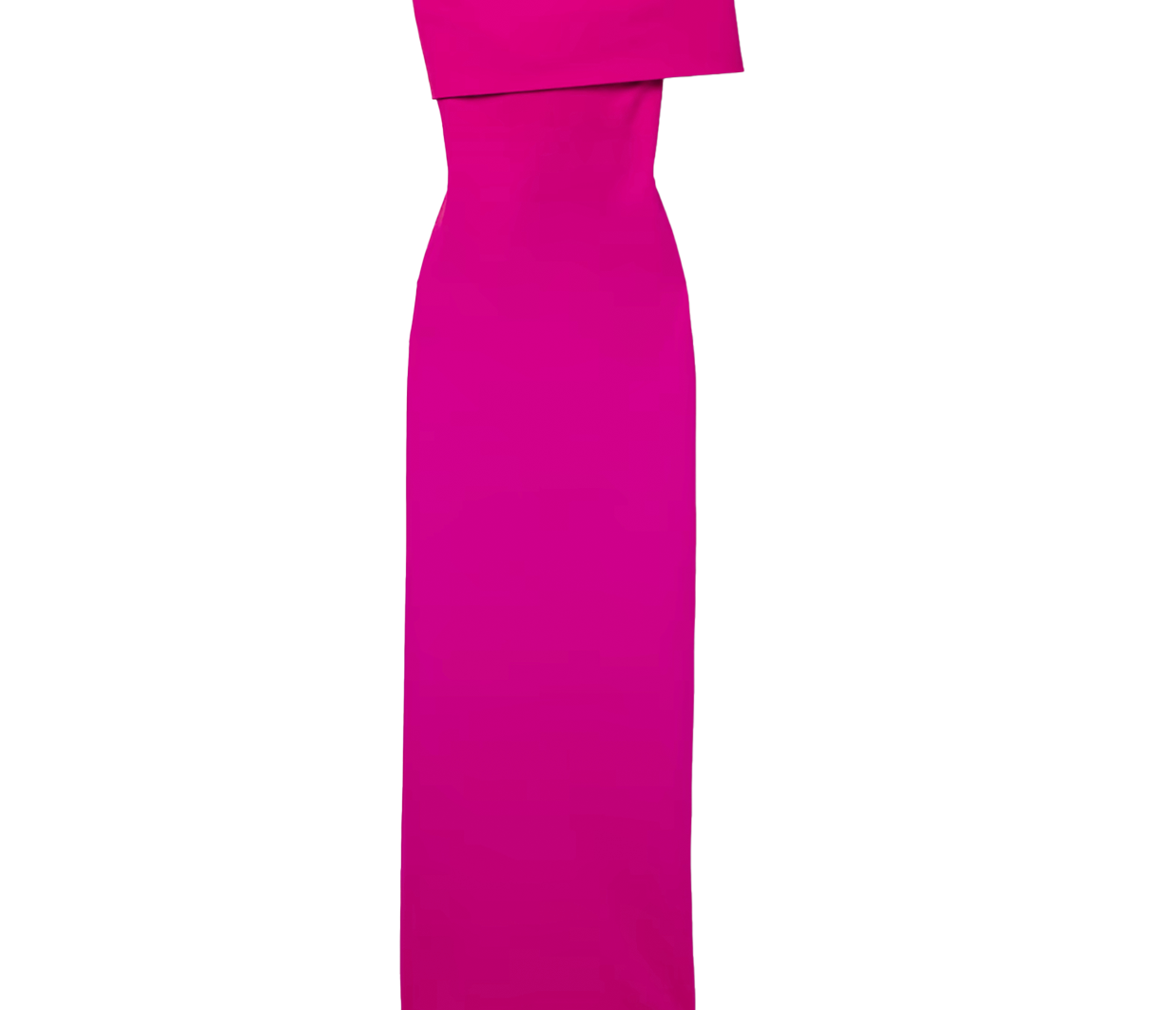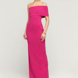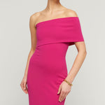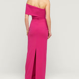 Lana One Shoulder Crepe Knit Maxi Dress in Fuchsia