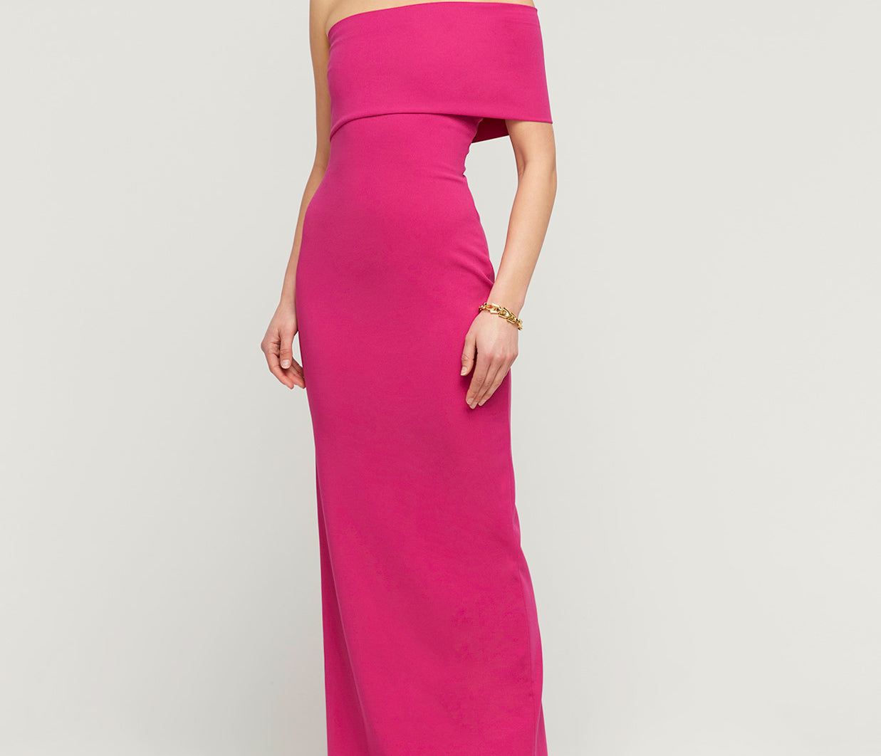 Lana is crafted from a crepe fabrication for a close fit, whilst featuring a dramatic back slit for ease of movement. Detailing an asymmetric neckline that sits elegantly off one shoulder, it is the ideal black tie number. Pair yours with sculptural accessories, such as statement earrings and a small clutch.