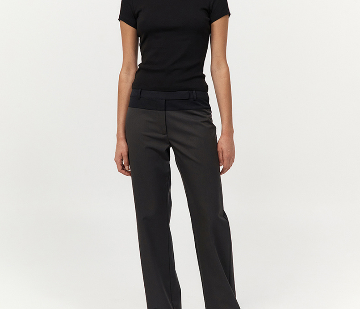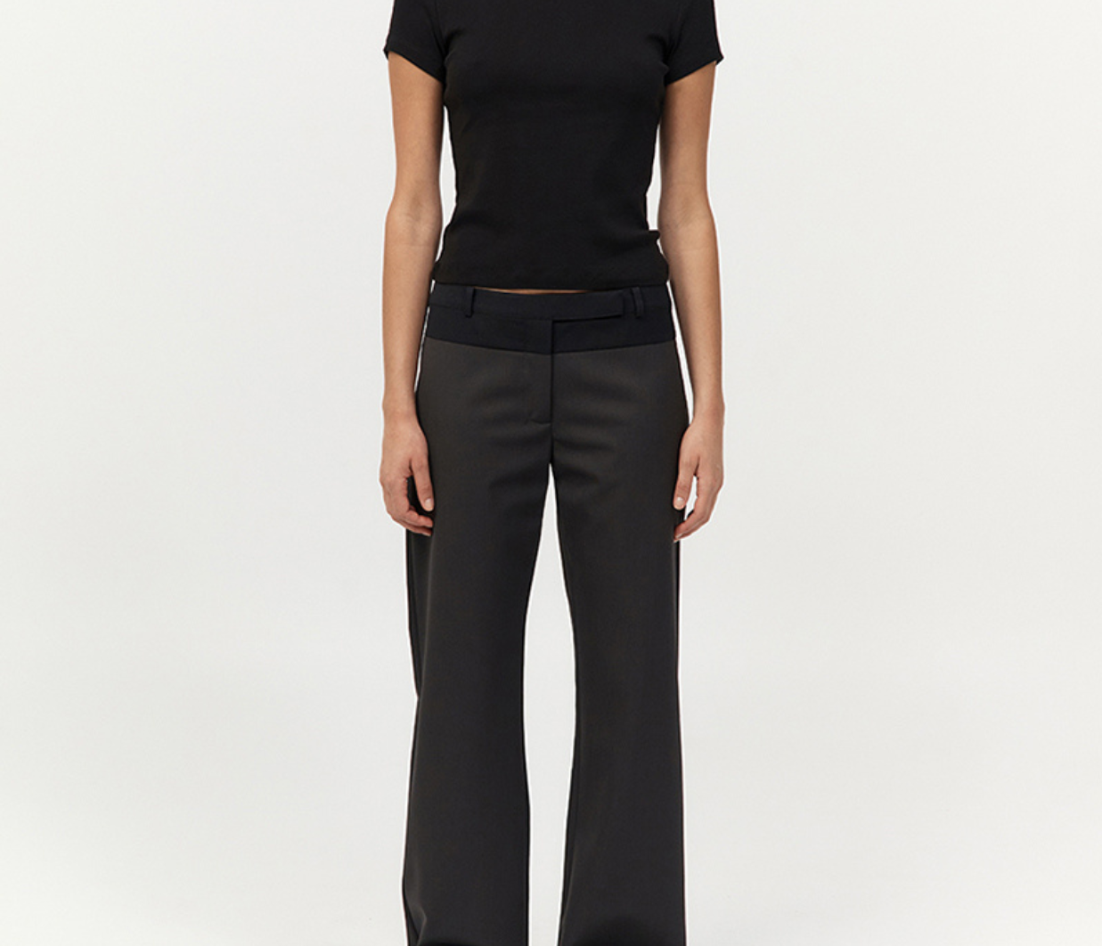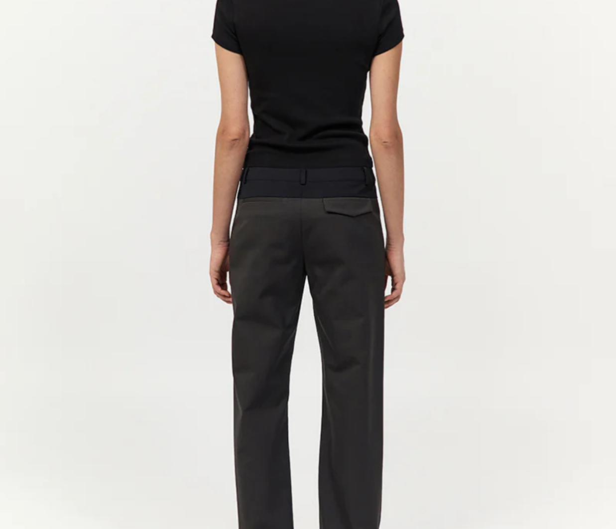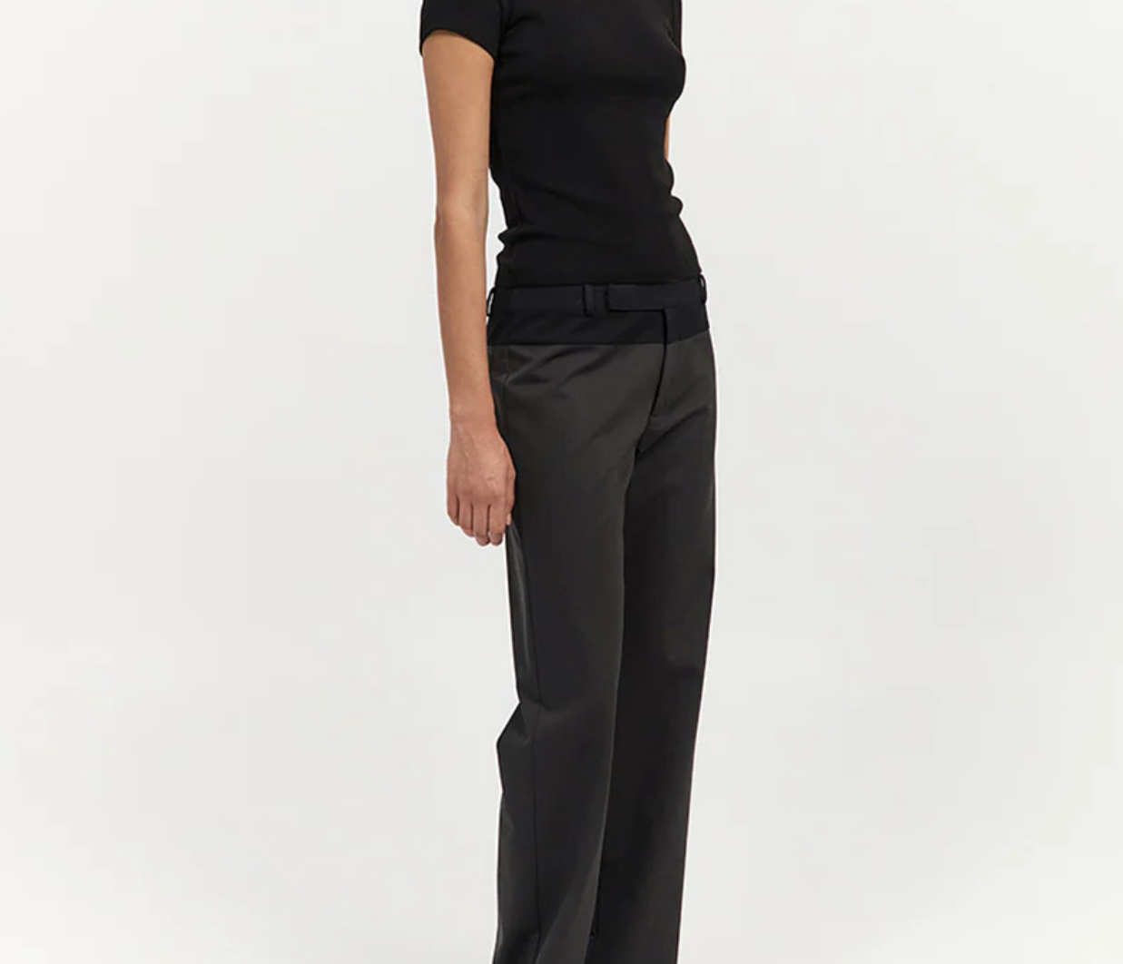 Introducing St Agni's 90s Splice Panelled Pants in Black Olive, cut from a responsibly sourced wool. Featuring a mid-rise waist, extended splice waistband detail and straight leg, the 90s Splice Panelled Pants reimagine tailoring with subtle detail and modern restraint.