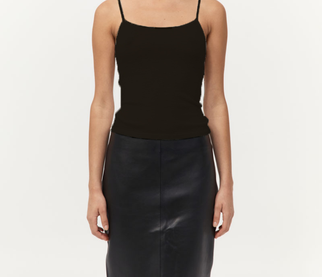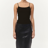 Introducing the Baby Wool Cami in Black, crafted from 100% merino wool, features a fine ribbed texture, scooped neckline, skinny straps, and a subtly sheer finish. Lightweight and breathable, the Baby Wool Cami is a versatile layering essential made for everyday wear.