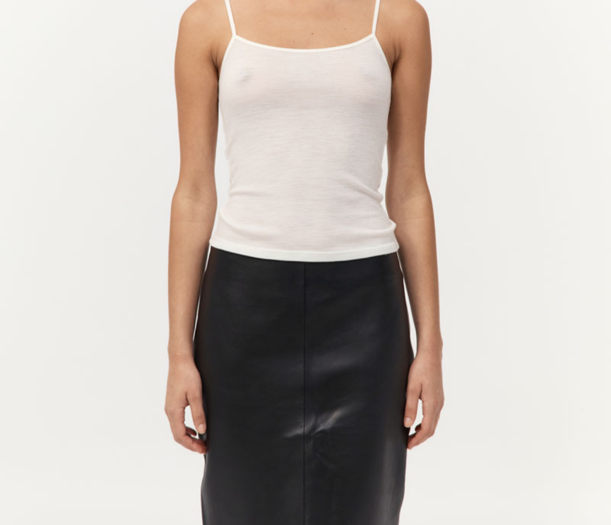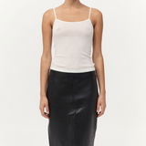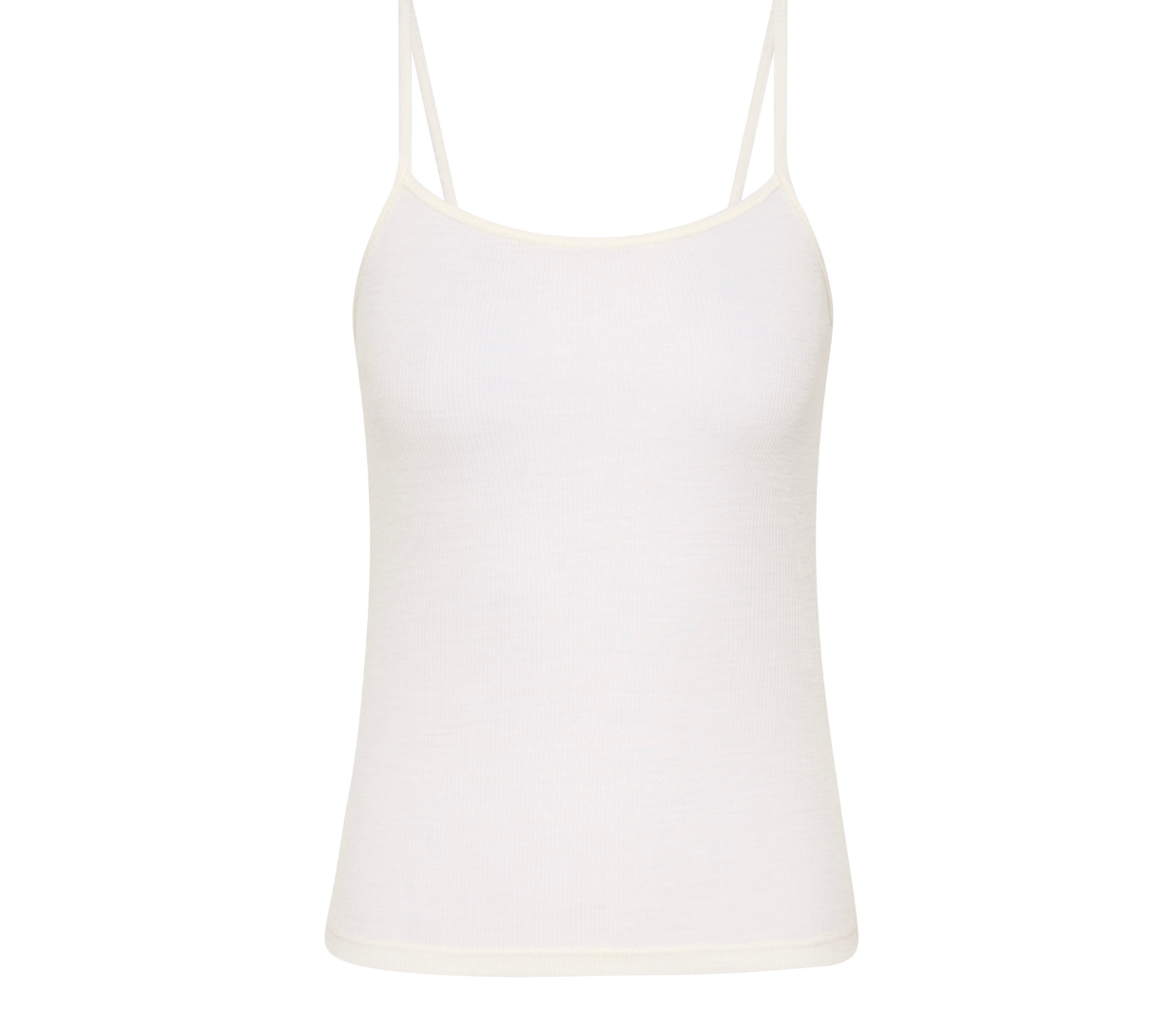 Introducing the Baby Wool Cami in Off White, crafted from 100% merino wool, features a fine ribbed texture, scooped neckline, skinny straps, and a subtly sheer finish. Lightweight and breathable, the Baby Wool Cami is a versatile layering essential made for everyday wear.