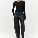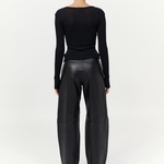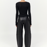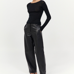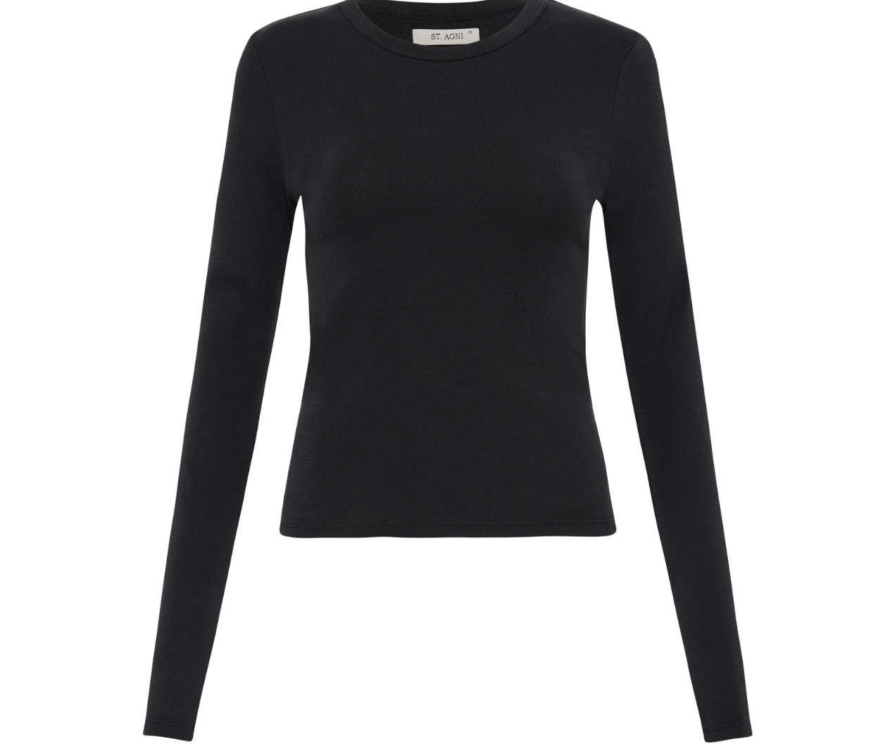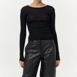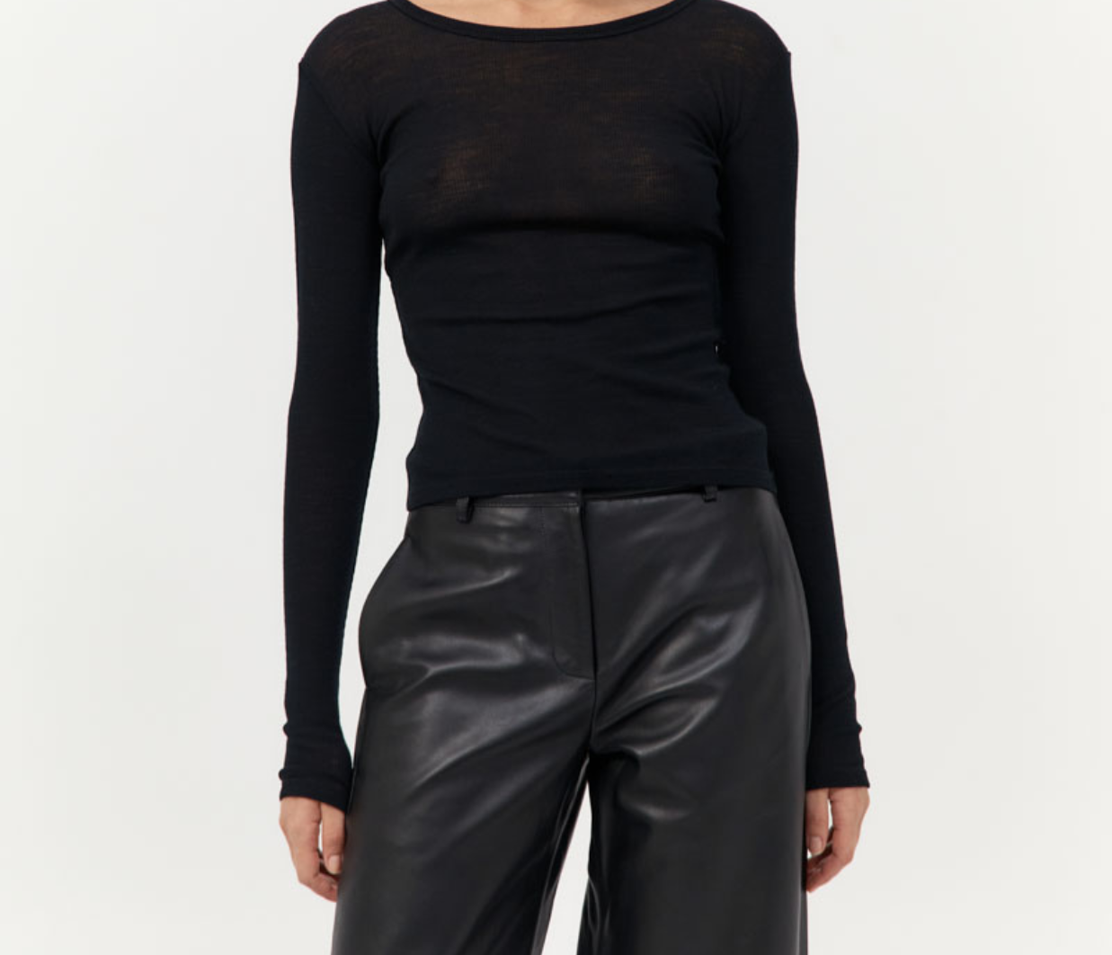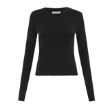 Introducing the Baby Wool Long Sleeve Top in Black is crafted from 100% merino wool, offering a fine ribbed texture, crew neckline and a subtly sheer finish. Designed with quiet sophistication, the Baby Wool Long Sleeve Top is perfect worn on its own or layered for effortless, everyday ease.