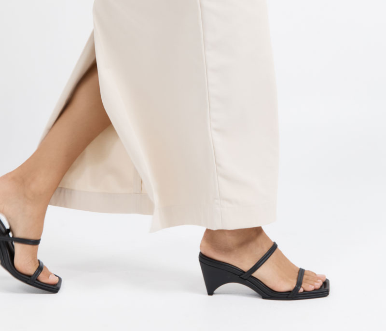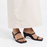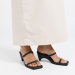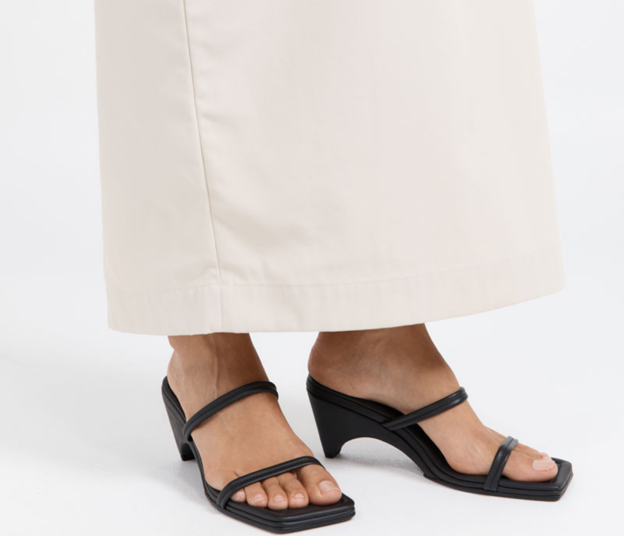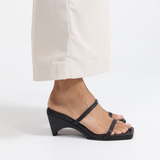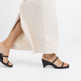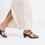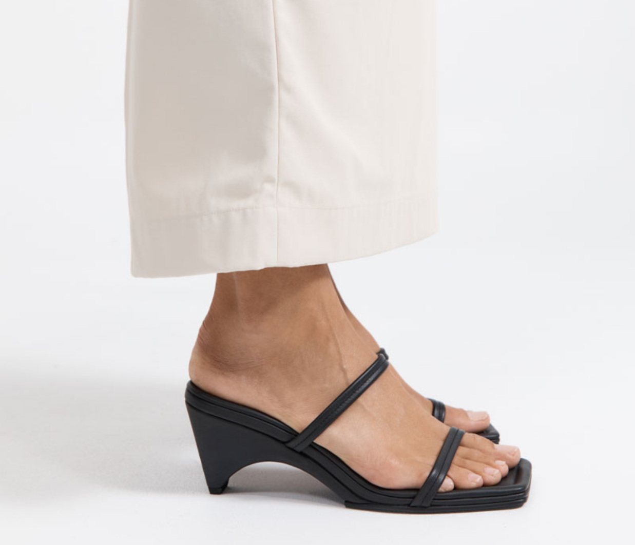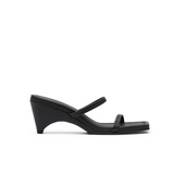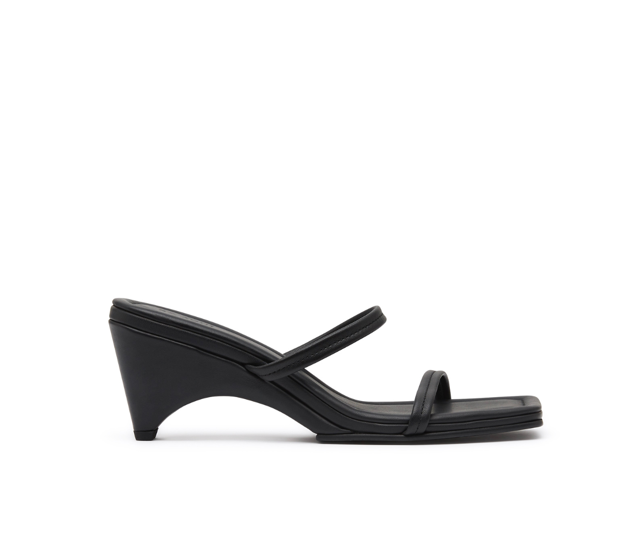 Introducing St Agni's Double Strap Arc Wedge in Black, a sculptural arc-shaped heel wedge. Featuring slender leather straps with contrast stitching and an open toe, the Double Strap Arc Wedge creates clean lines and architectural height. A directional silhouette designed for transitional wear.