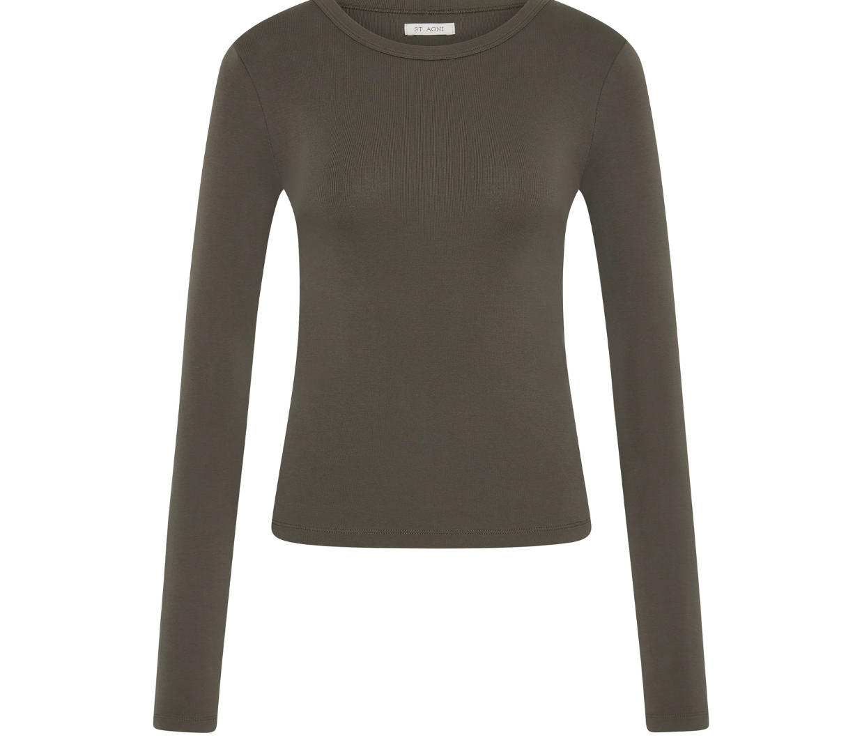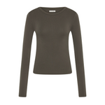 A slim-line minimalist staple, introducing the Organic Cotton Long Sleeve Top in Khaki, boasts a crew neckline, long-sleeve silhouette, and 100% organic cotton construction. Designed to layer seamlessly with your capsule wardrobe.