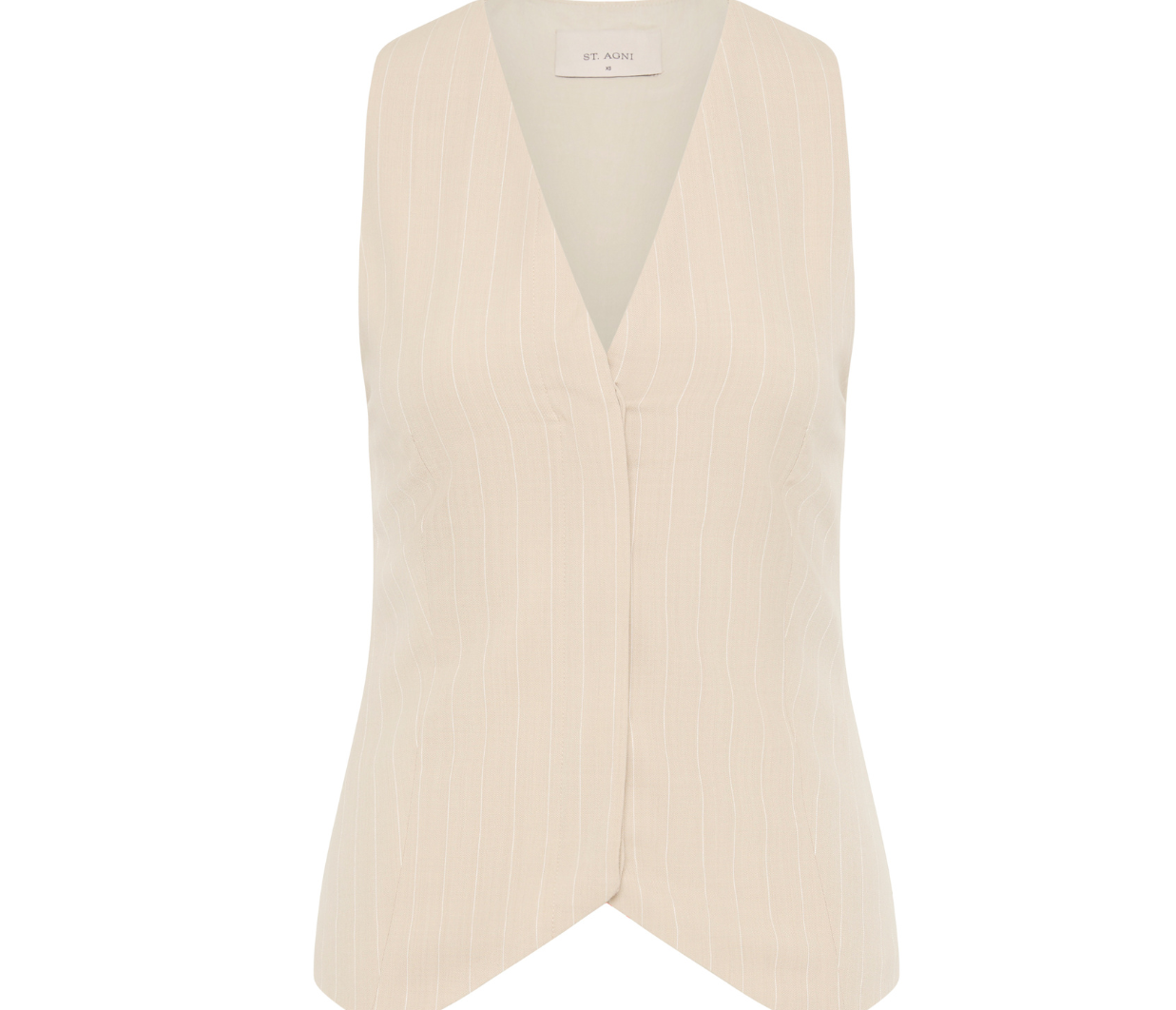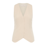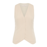 Introducing the Pinstripe Wool Vest in Latte crafted from responsibly sourced wool and lined with Lyocell Twill, embodying refined tailoring with ease. Featuring a sleeveless design, V-neckline, and concealed button placket, the Pinstripe Wool Vest offers a seamless, tailored fit. Pair it with the Pinstripe Wool Drawstring Pants for a coordinated look.