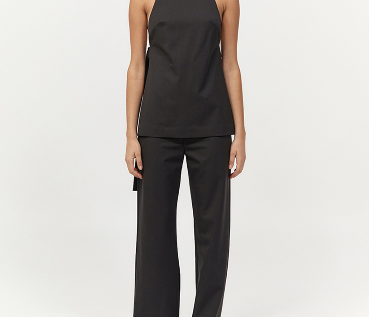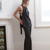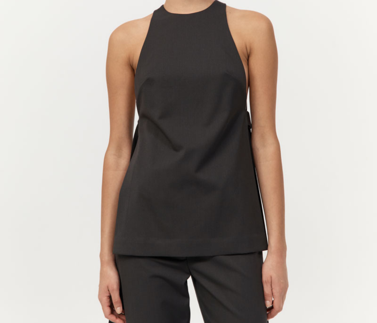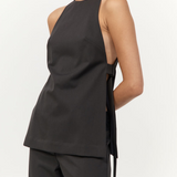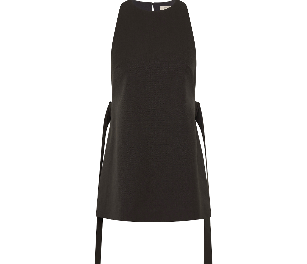 Introducing St Agni's Side Tie Top in Black Olive, a slim cut silhouette crafted from responsibly sourced wool. Featuring a crew neckline, bust darts, and open side seams, the Side Tie Top is finished with adjustable D-ring ties for a custom fit. A contemporary layering piece that adds edge to refined tailoring.